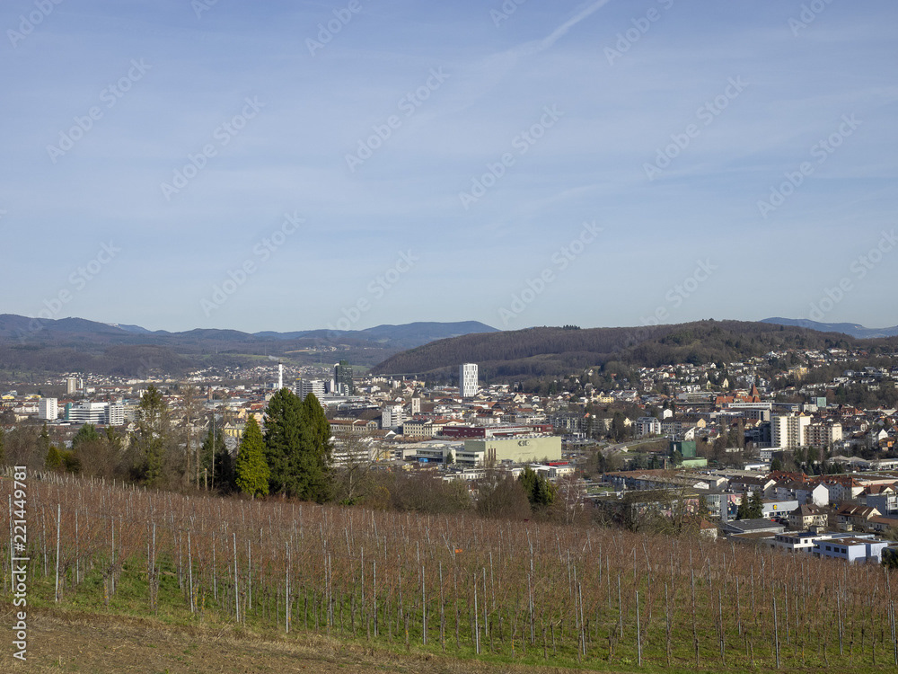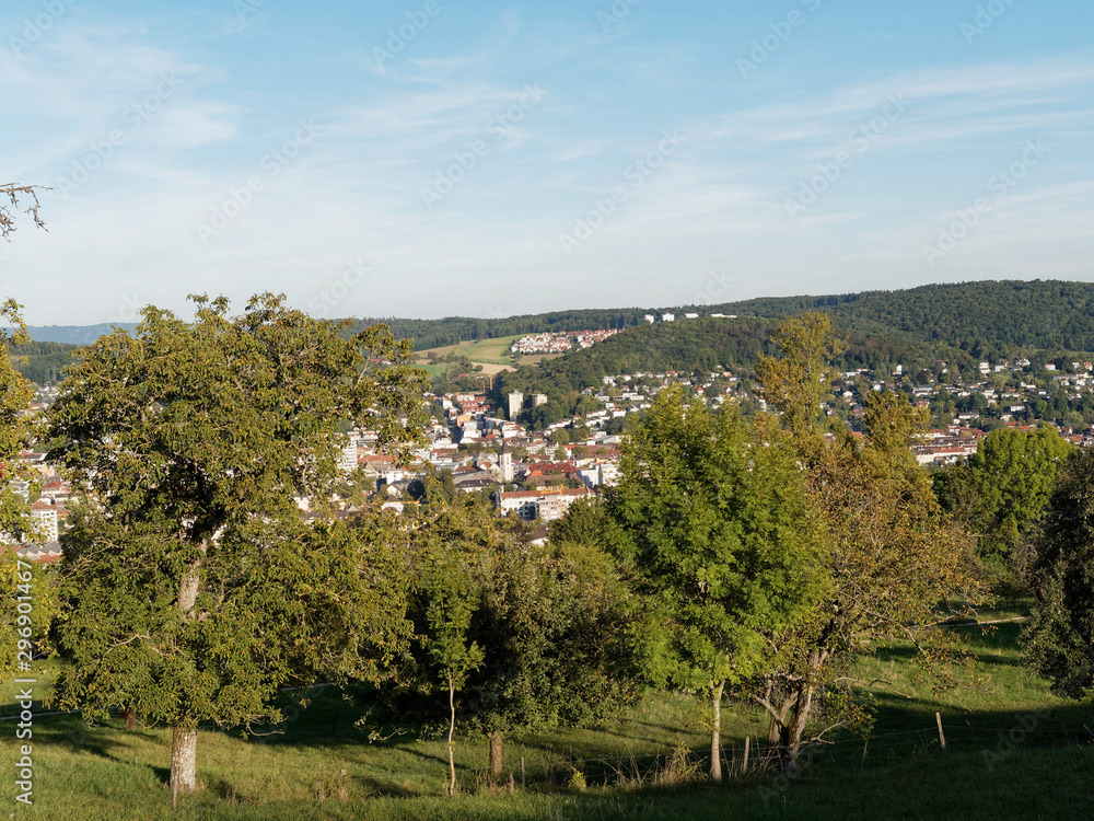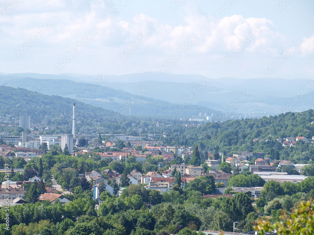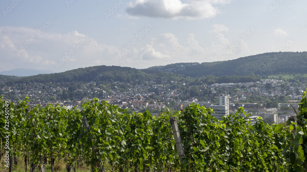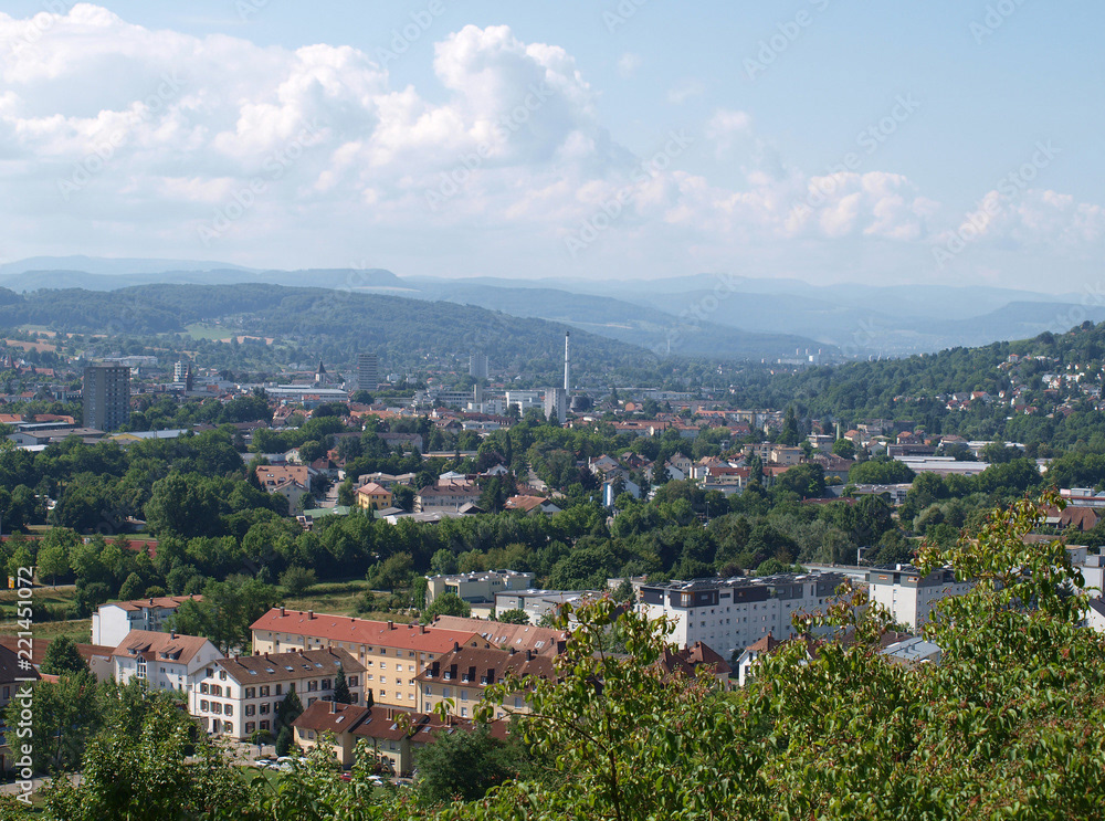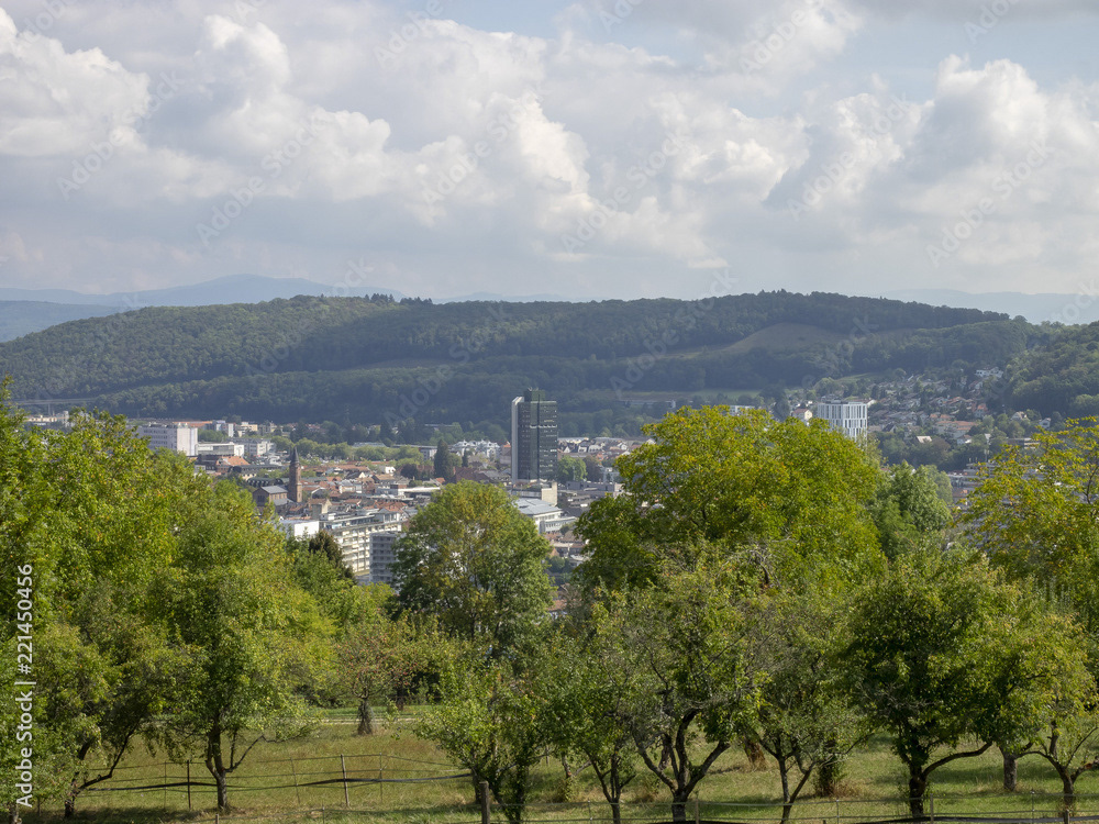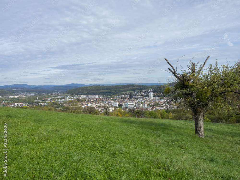 Lörrach, Hauptstadt des Markgräflerlandes, nahe des Dreiländereck Deutschland, Frankreich und Schweiz. Erstreckt sich südlich des Wiesentals umgeben von den Schwarzwaldbergen