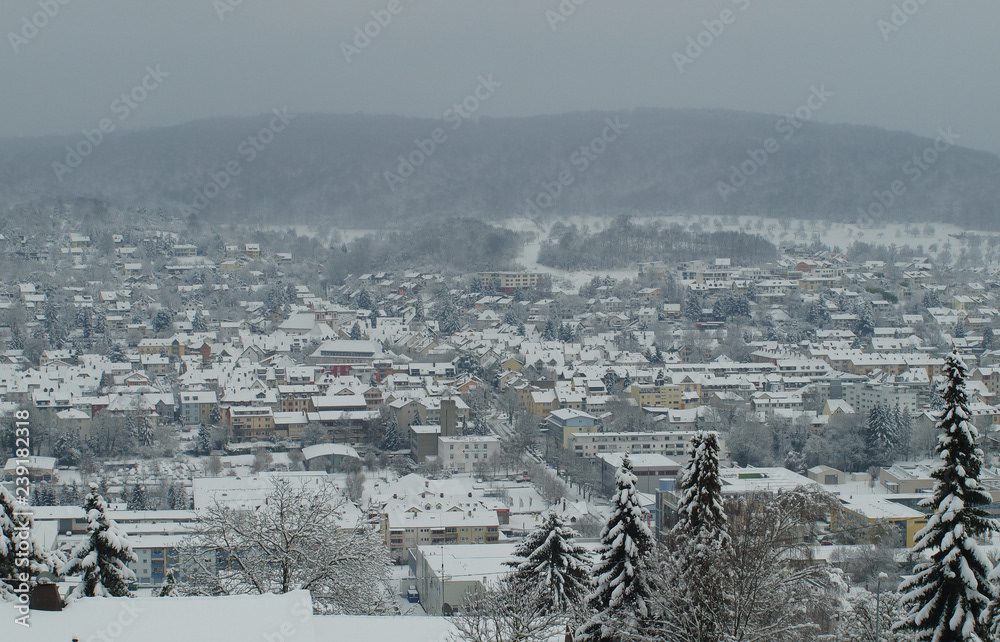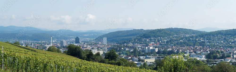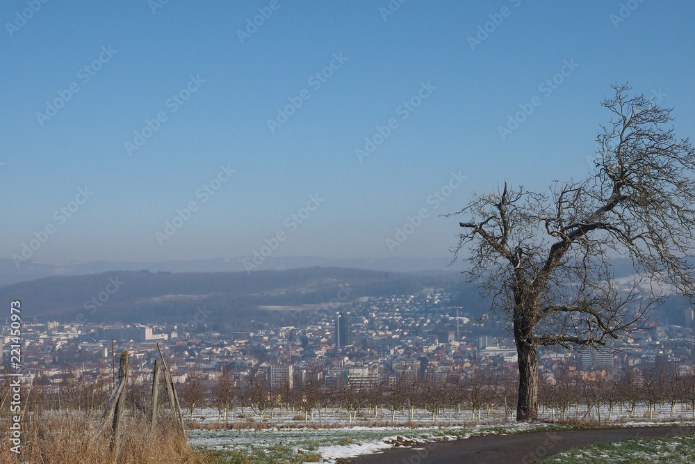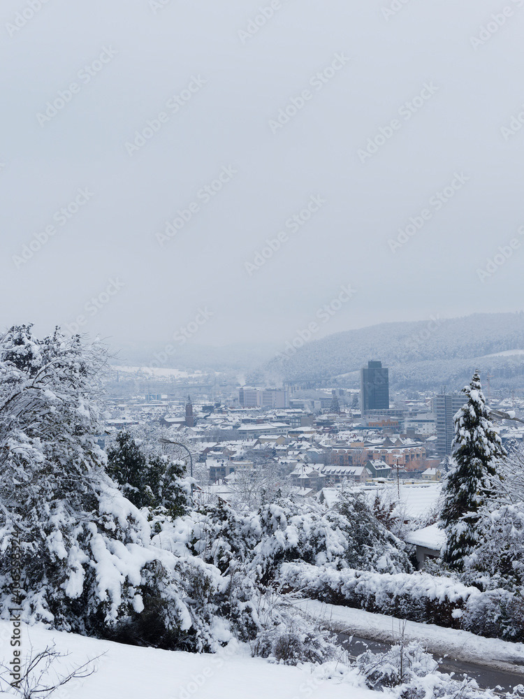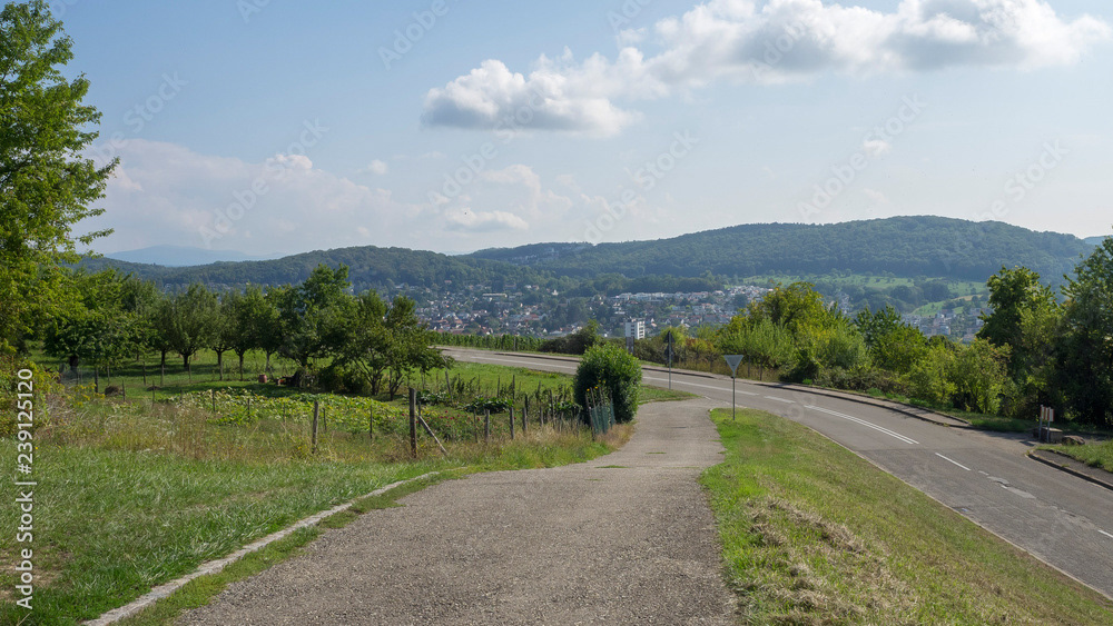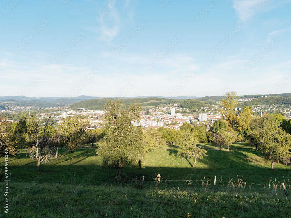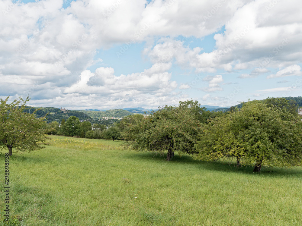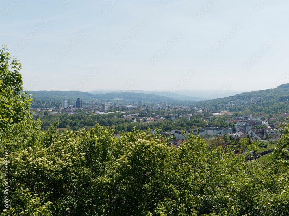 Lörrach, Hauptstadt des Markgräflerlandes, nahe des Dreiländereck Deutschland, Frankreich und Schweiz. Erstreckt sich südlich des Wiesentals umgeben von den Schwarzwaldbergen