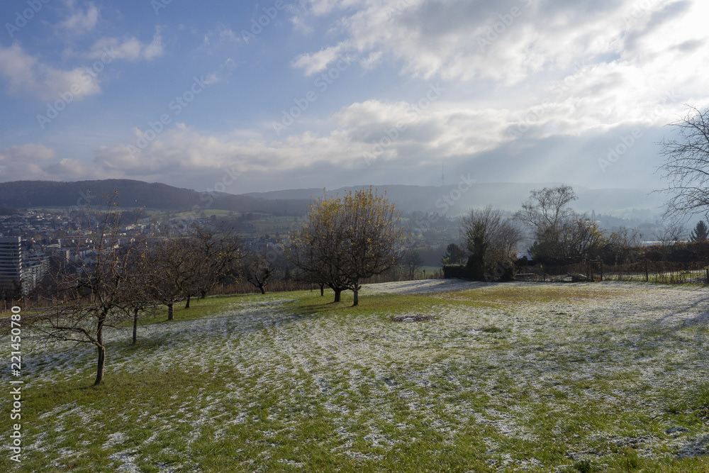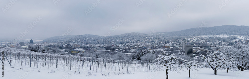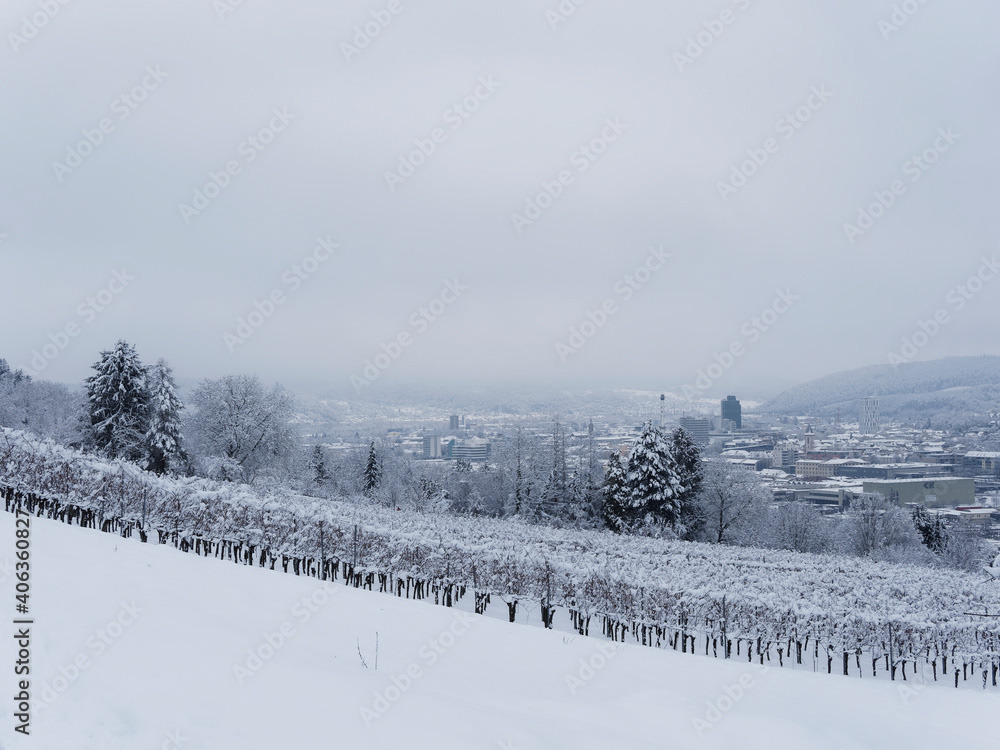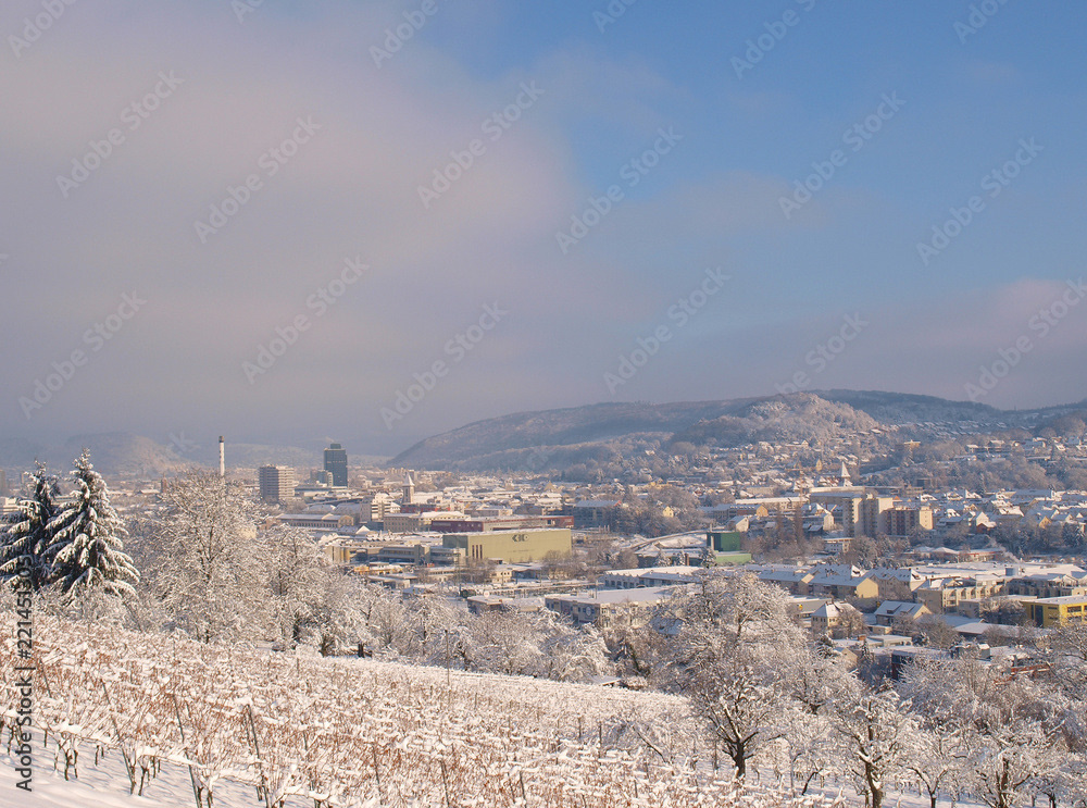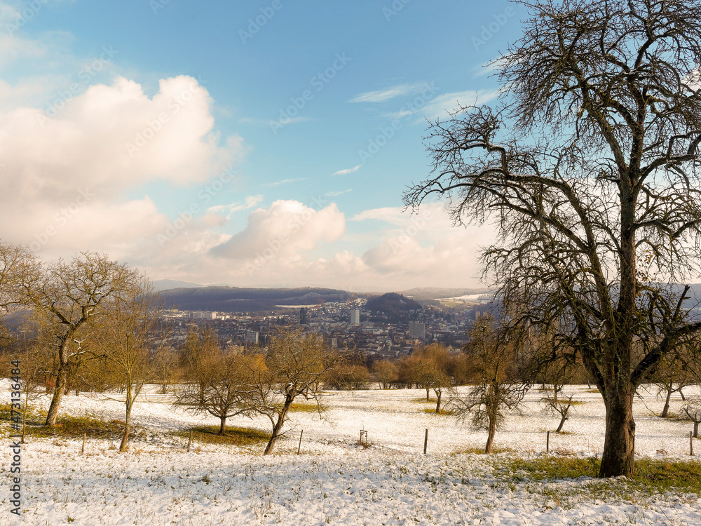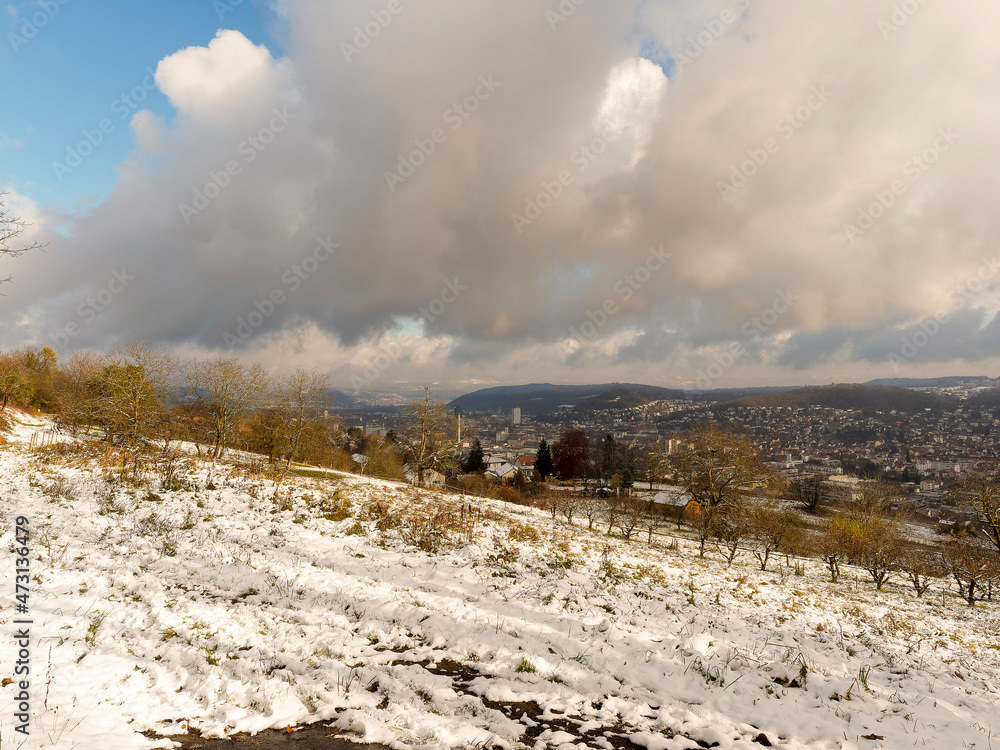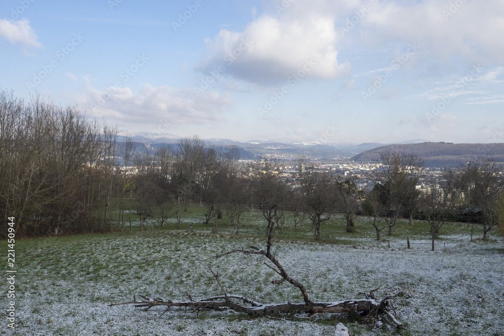 Lörrach, Hauptstadt des Markgräflerlandes, nahe des Dreiländereck Deutschland, Frankreich und Schweiz. Erstreckt sich südlich des Wiesentals umgeben von den Schwarzwaldbergen