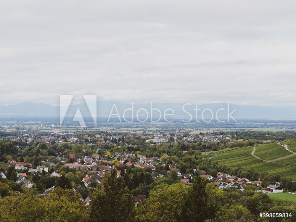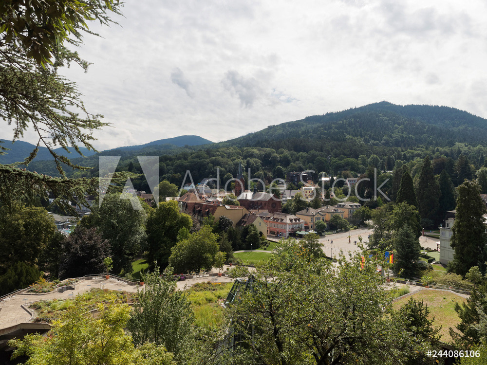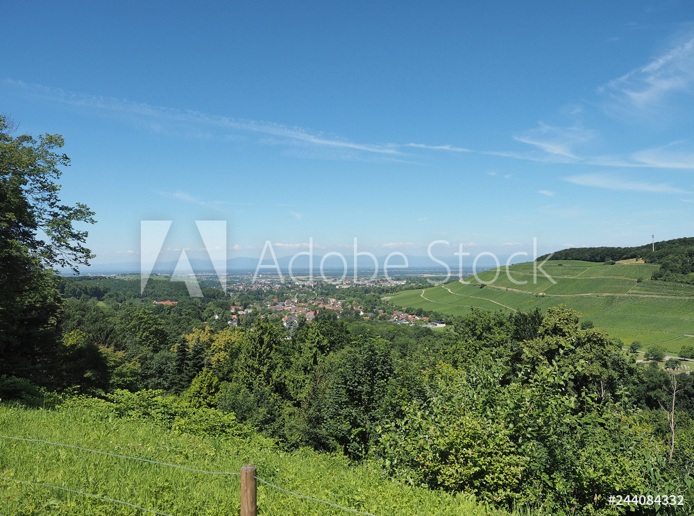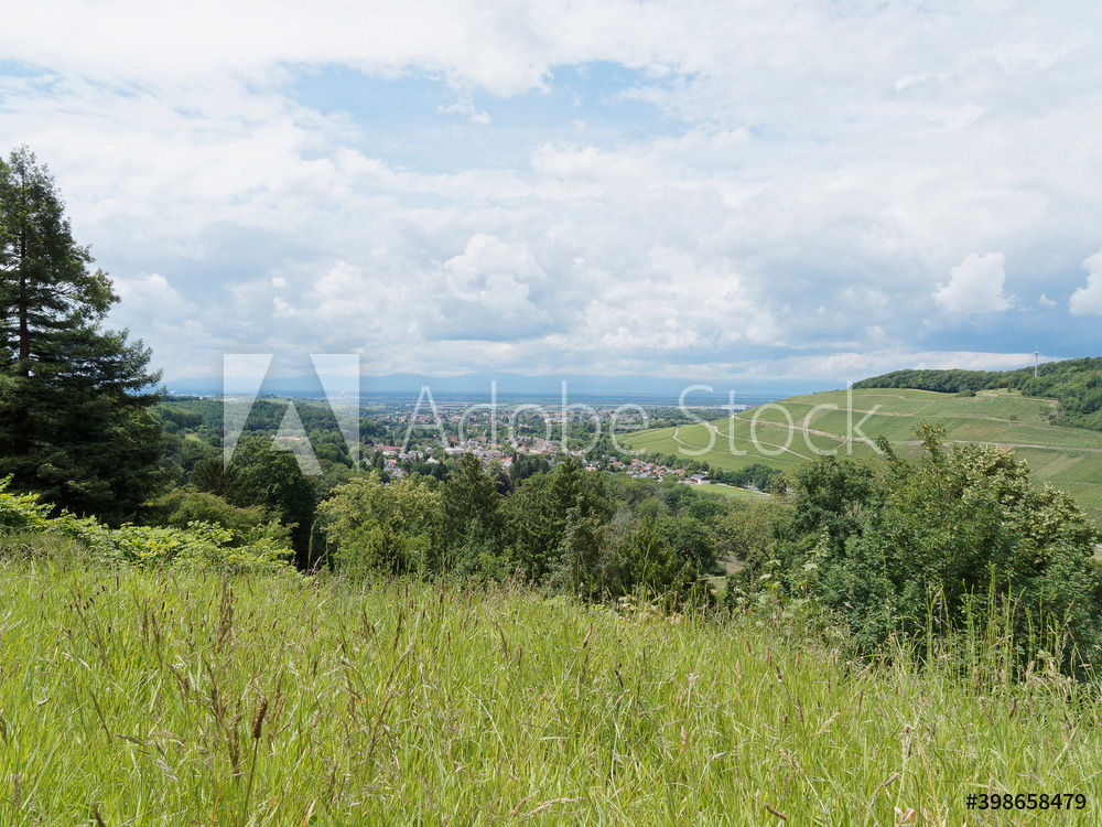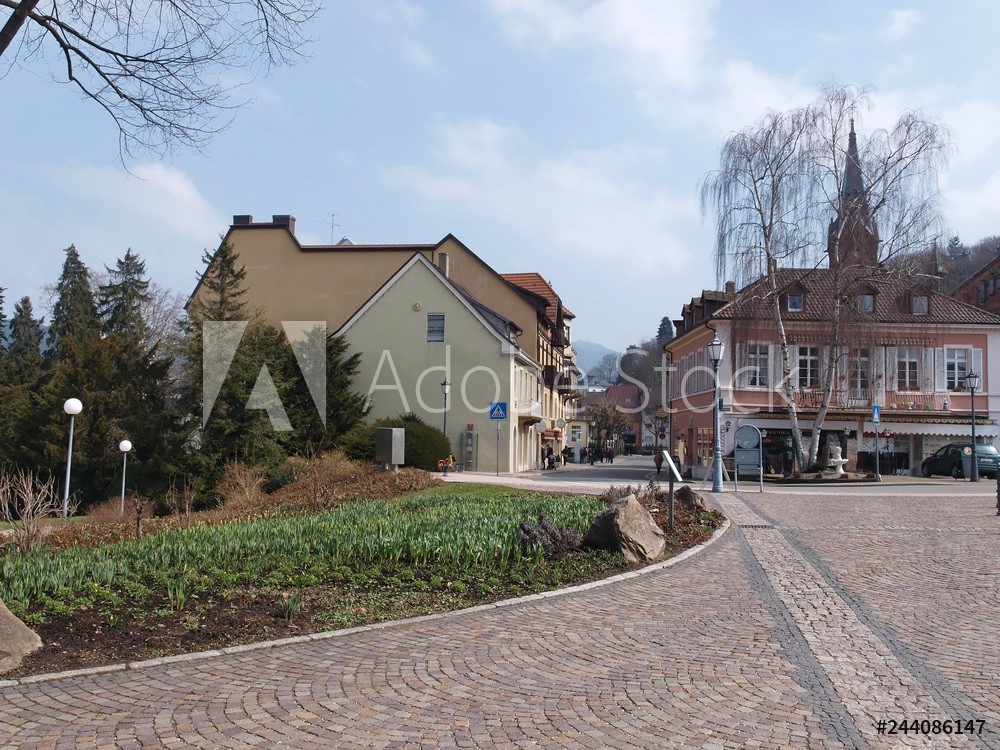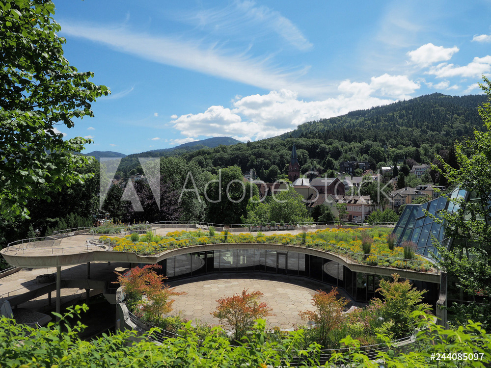 Badenweiler im Markgräflerland am Fuße des Schwarzwaldes nahe Hochblauen. Sein angenehmes Klima und seine Thermalquellen und Thermalpark machen es zu einem Touristenziel