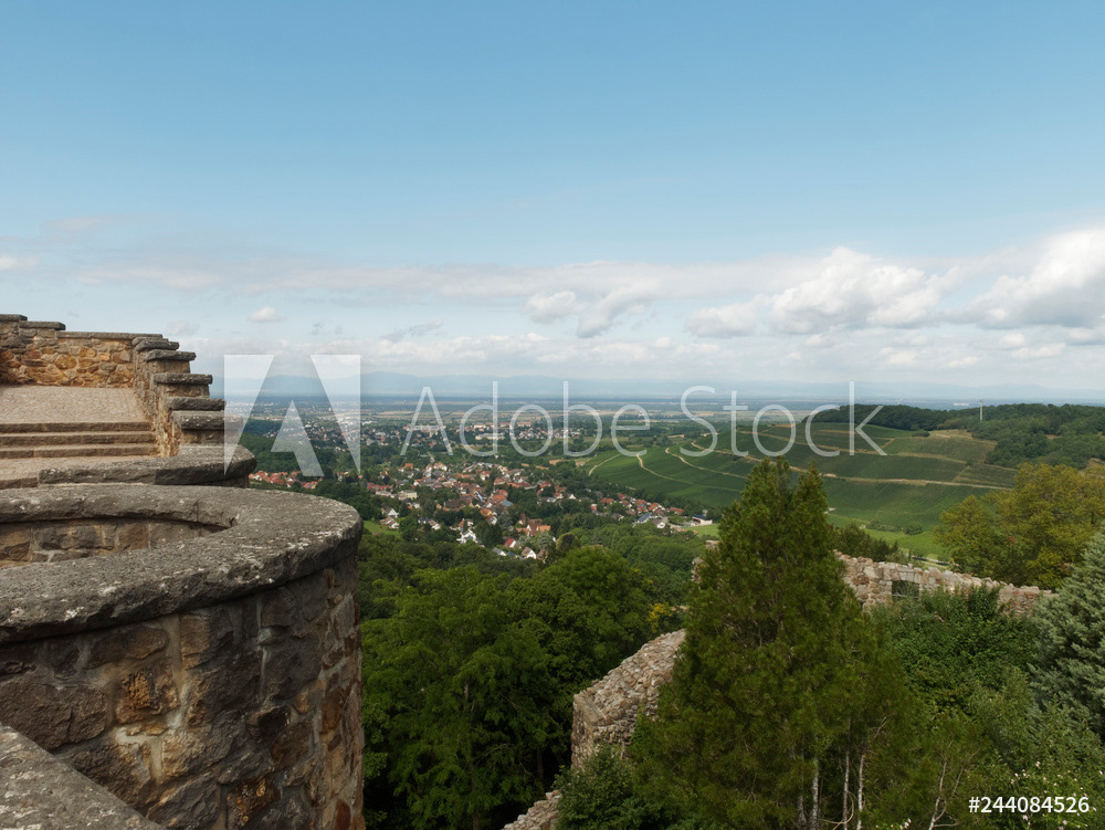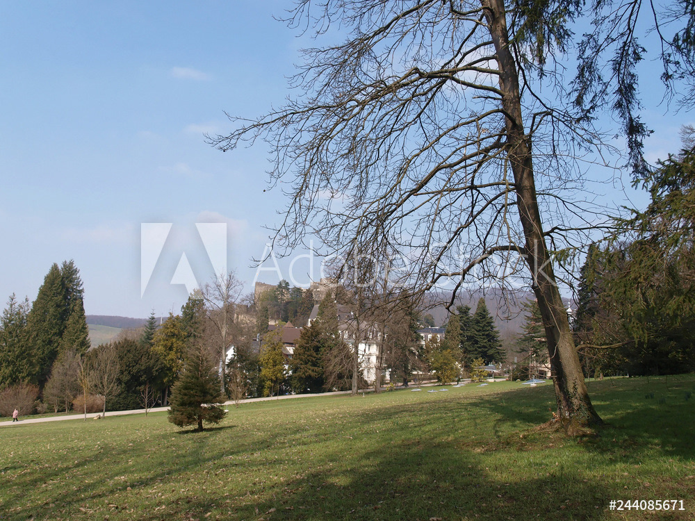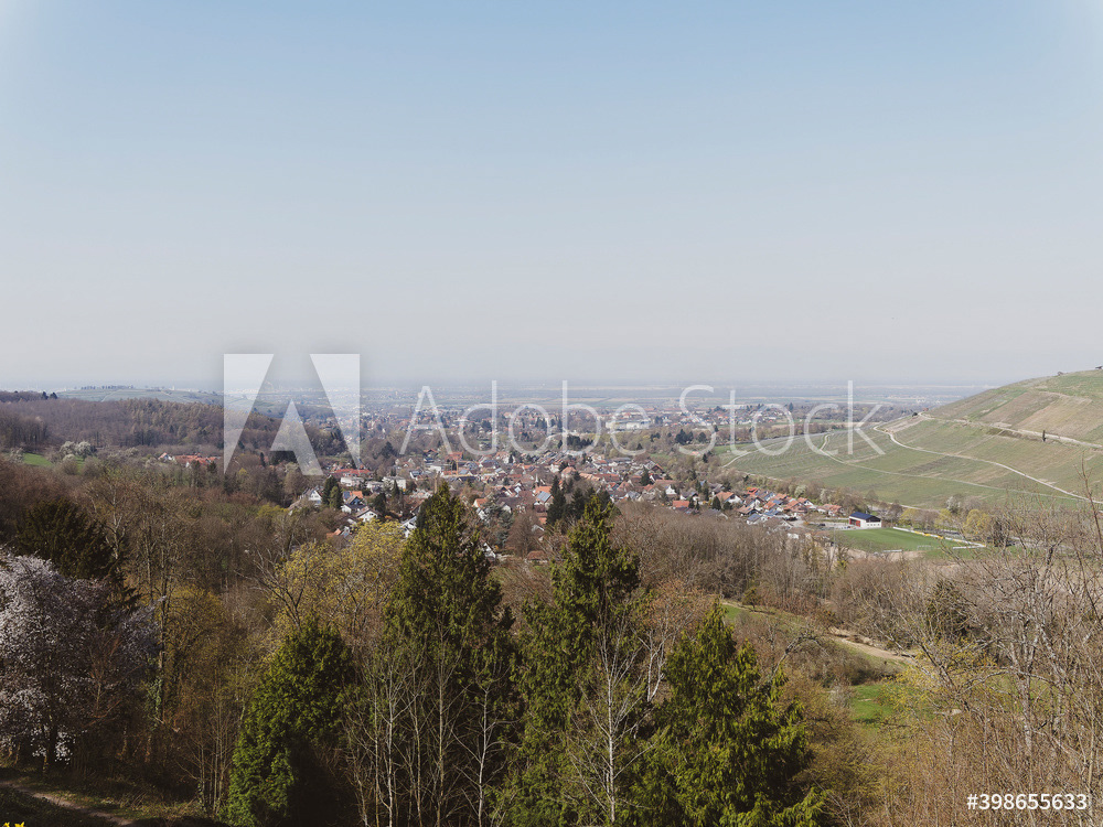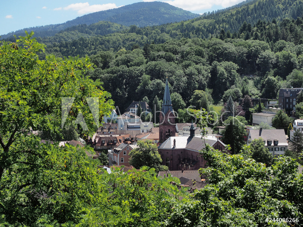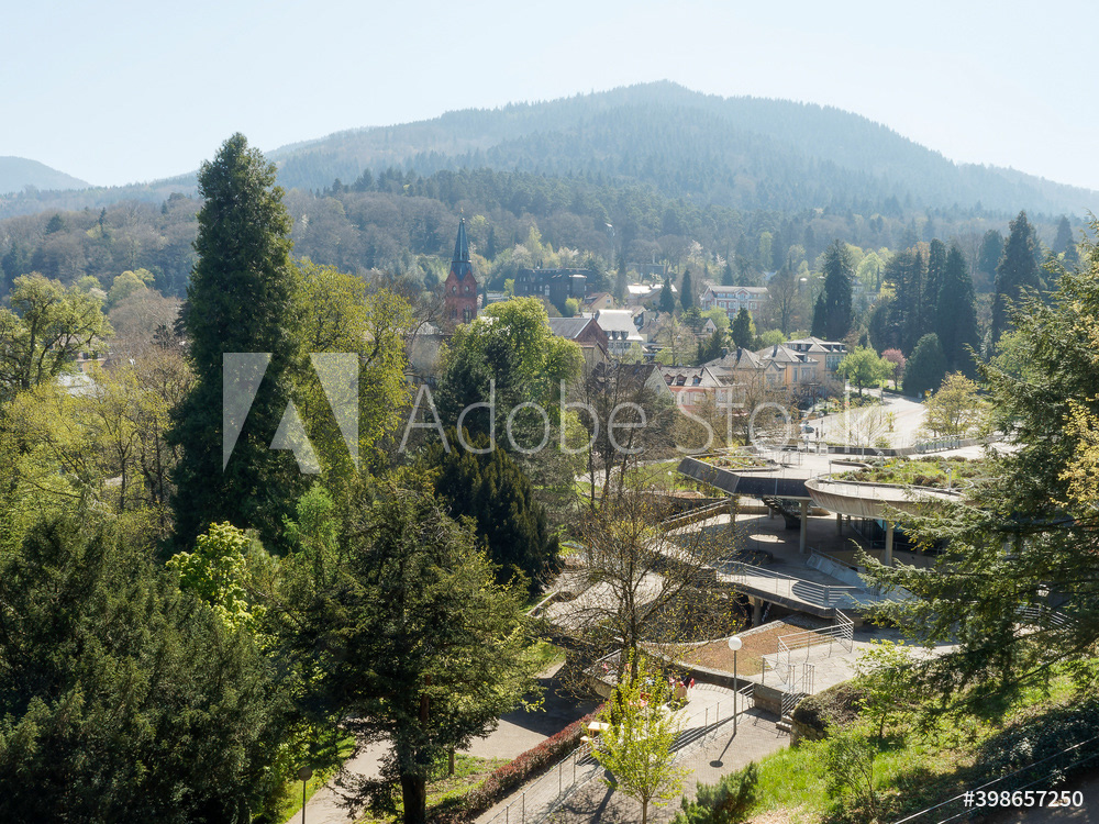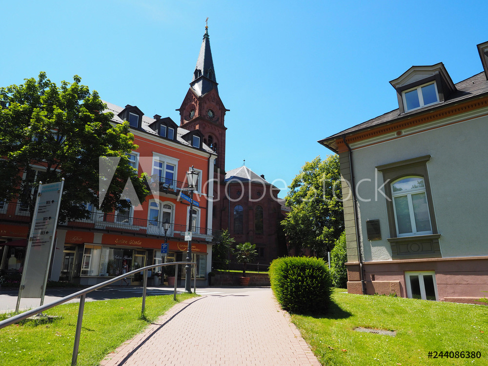 Badenweiler im Markgräflerland am Fuße des Schwarzwaldes nahe Hochblauen. Sein angenehmes Klima und seine Thermalquellen und Thermalpark machen es zu einem Touristenziel