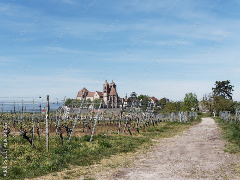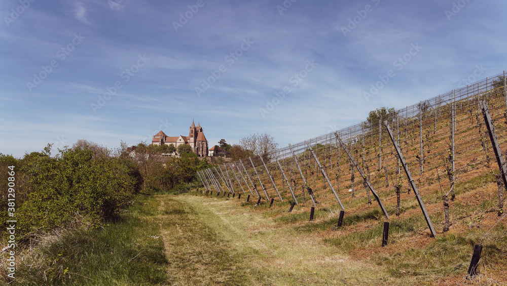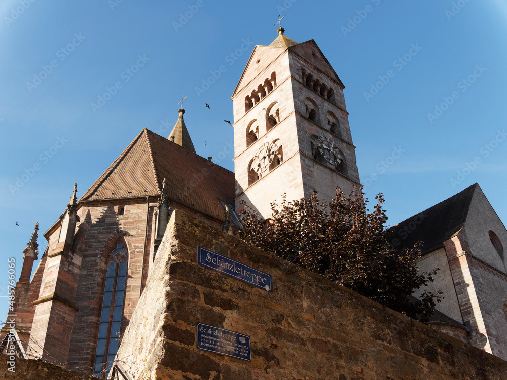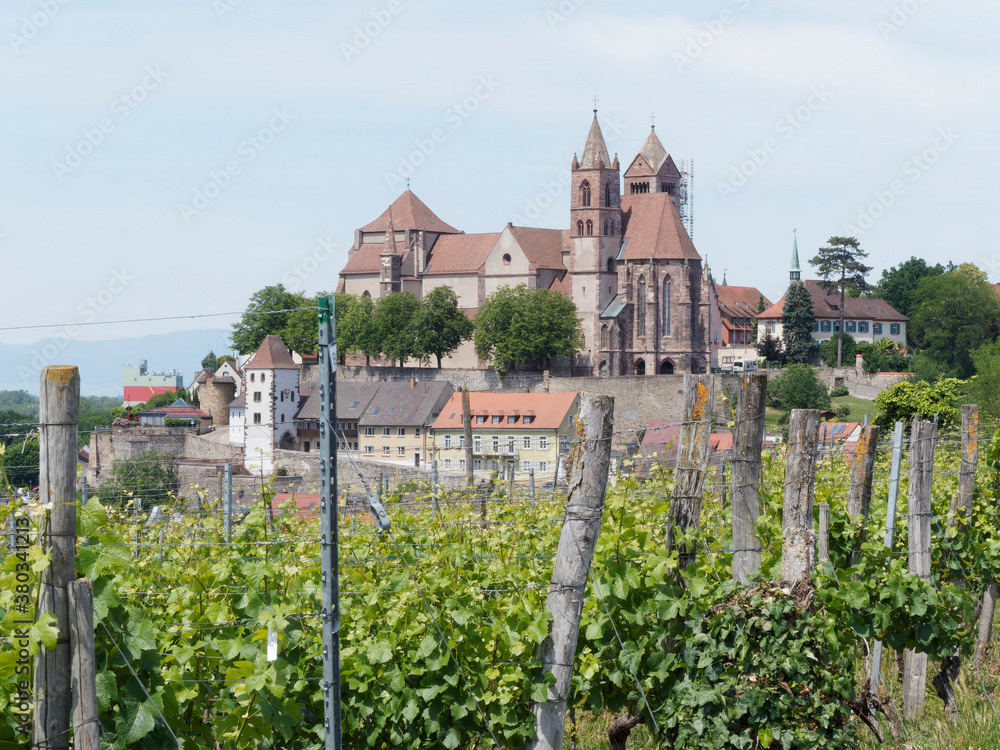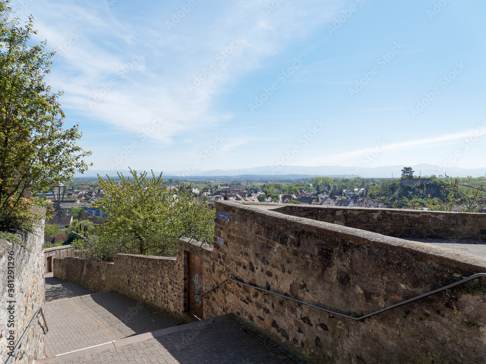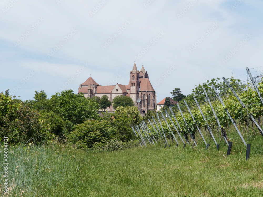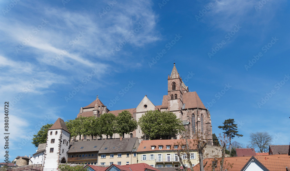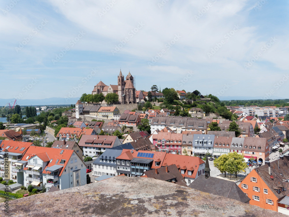 Ehemalige Kaiserfestung auf einem Berg an der deutsch-französischen Grenze mit Blick auf den Rhein und Kaiserstuhl.Eckartsberg mit Munster und Münsterberg auf die Altstadt und Das Rheintor