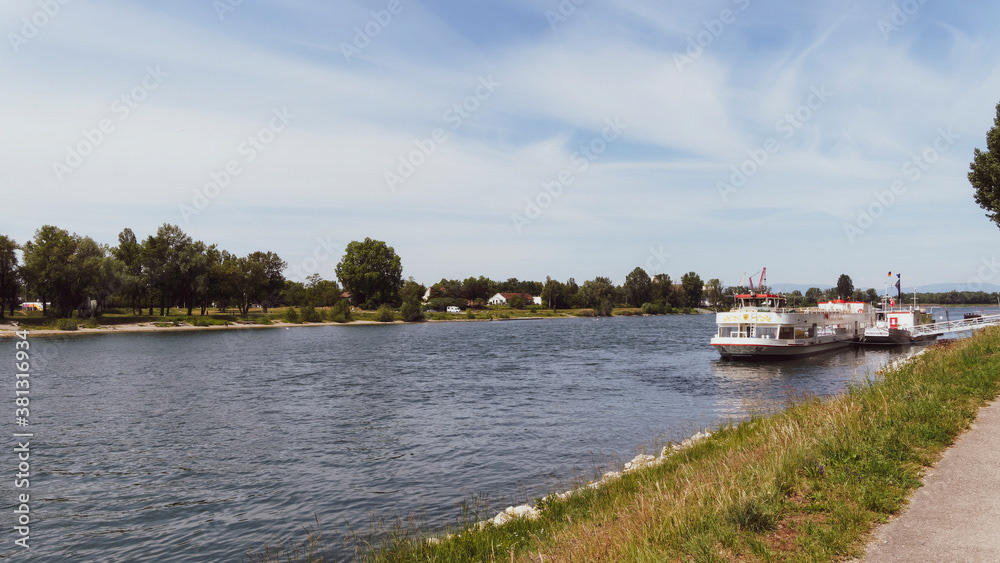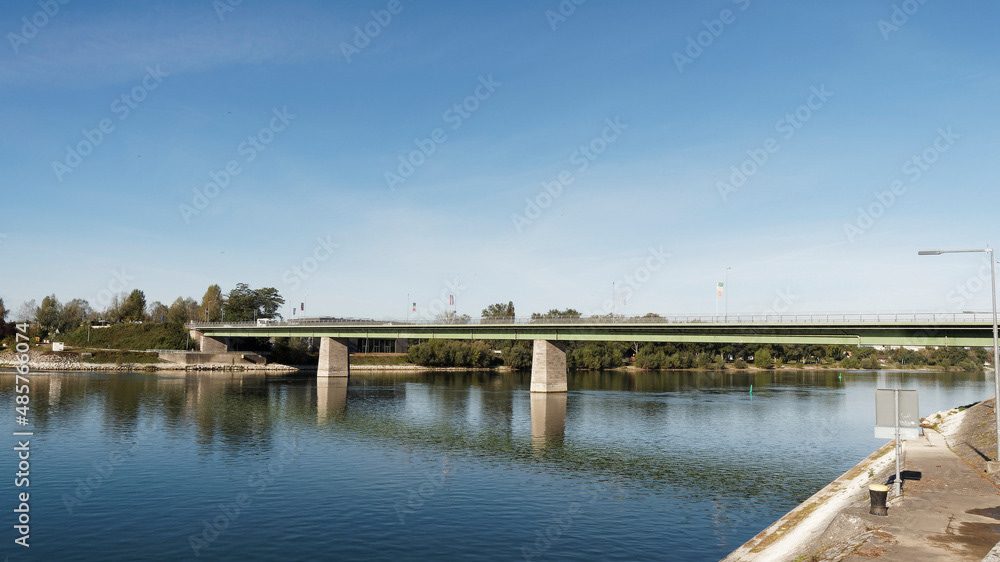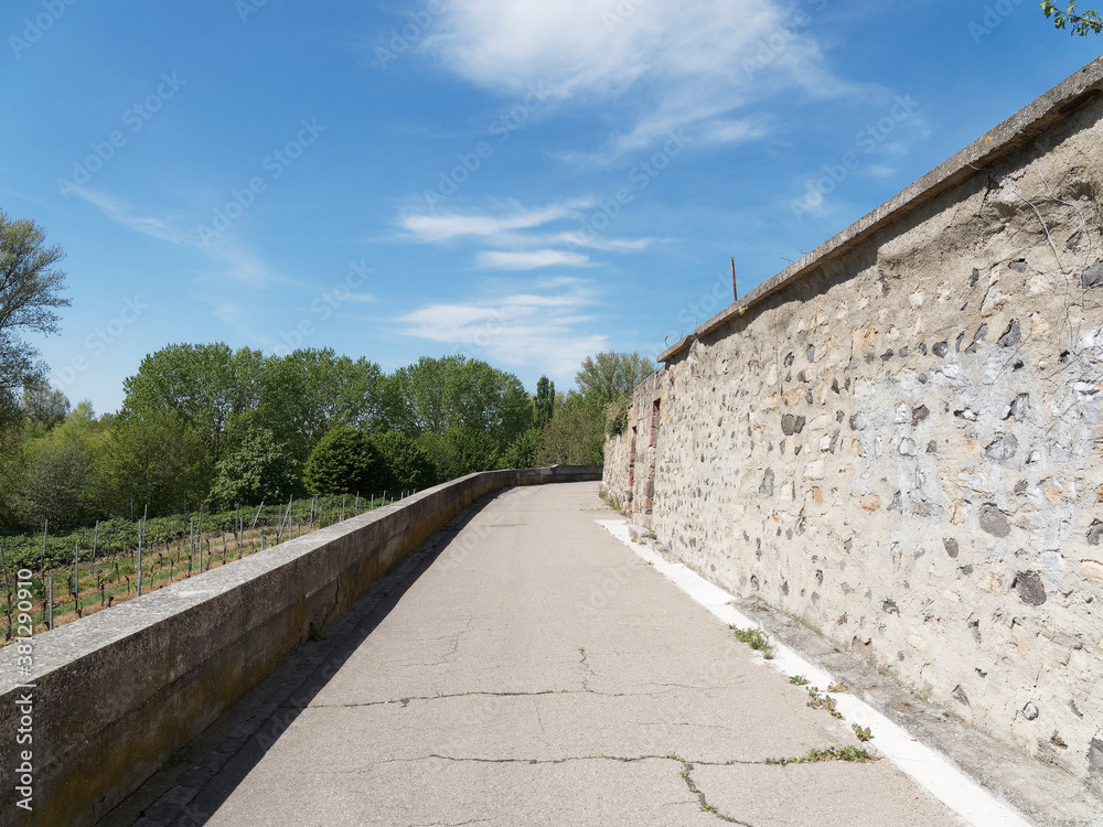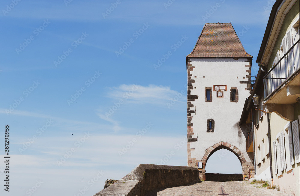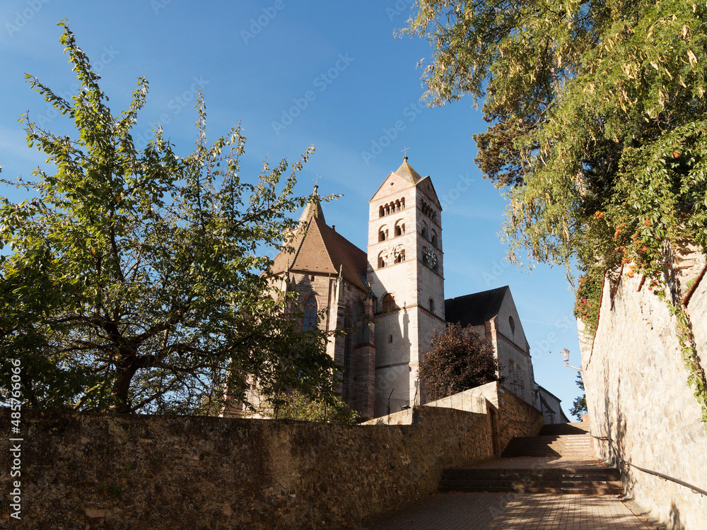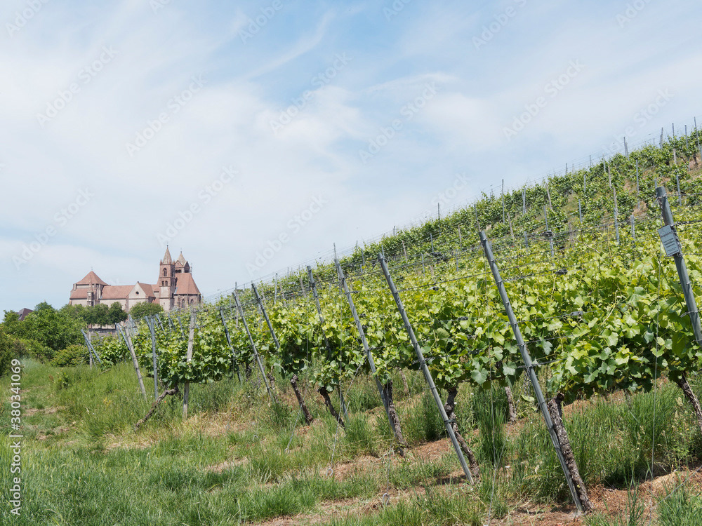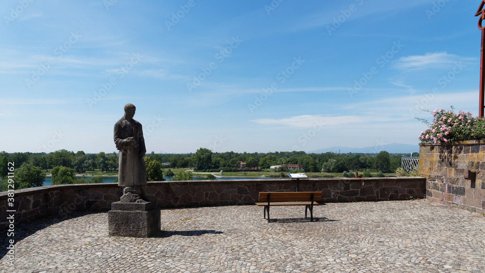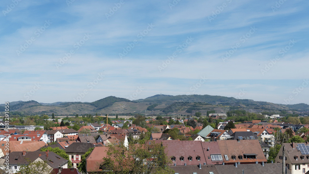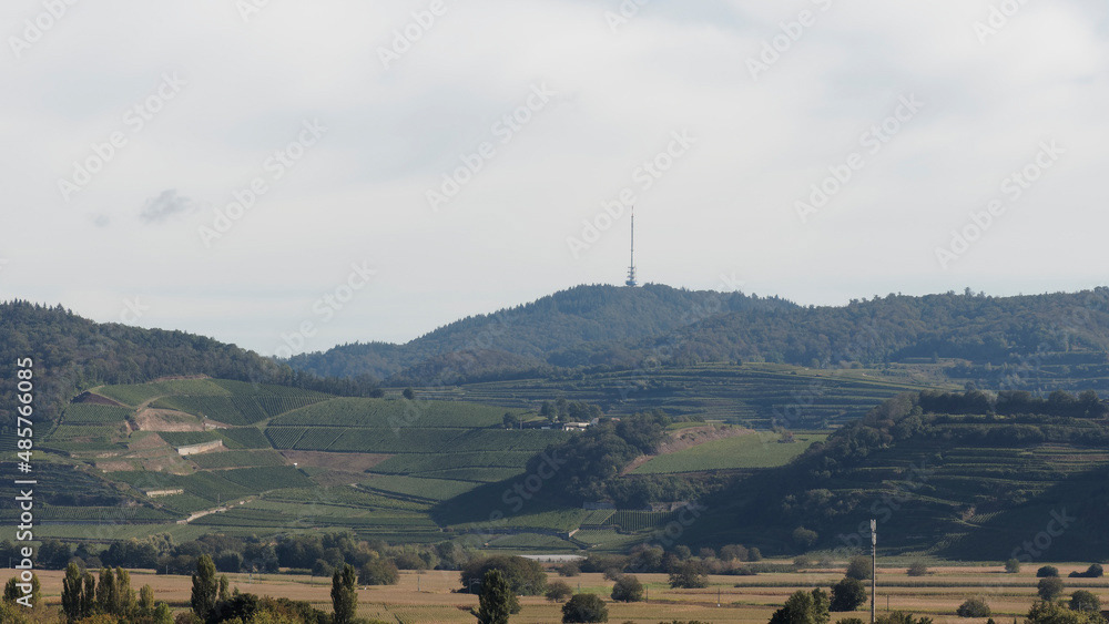 Ehemalige Kaiserfestung auf einem Berg an der deutsch-französischen Grenze mit Blick auf den Rhein und Kaiserstuhl.Eckartsberg mit Munster und Münsterberg auf die Altstadt und Das Rheintor