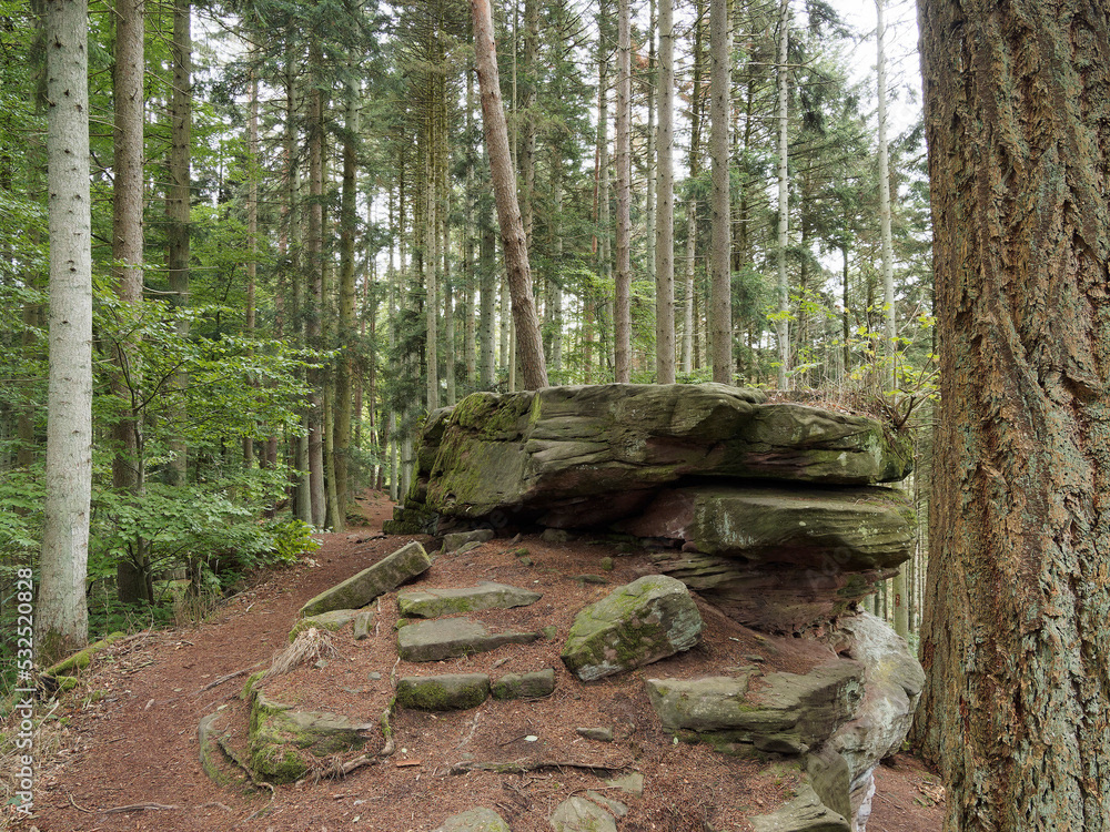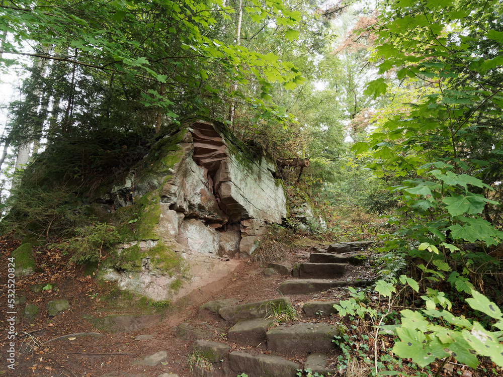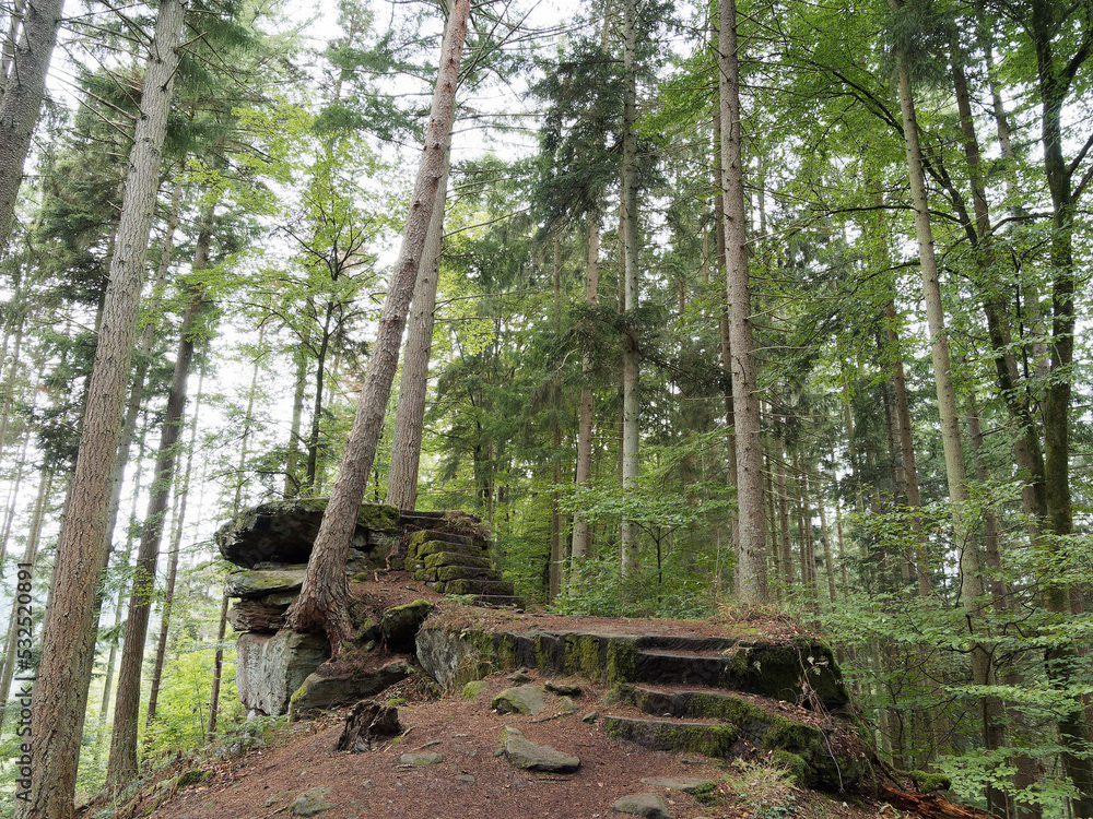 Eine der schönsten Burgruinen in nahe Altbulach über der Nagoldtal. Ein historischer Weg führt zu den Überresten der Burg und ihren Nebengebäuden auf einem felsigen, bewaldeten Bergrücken