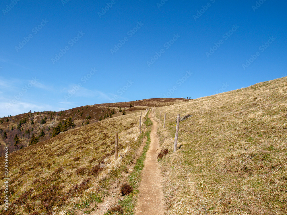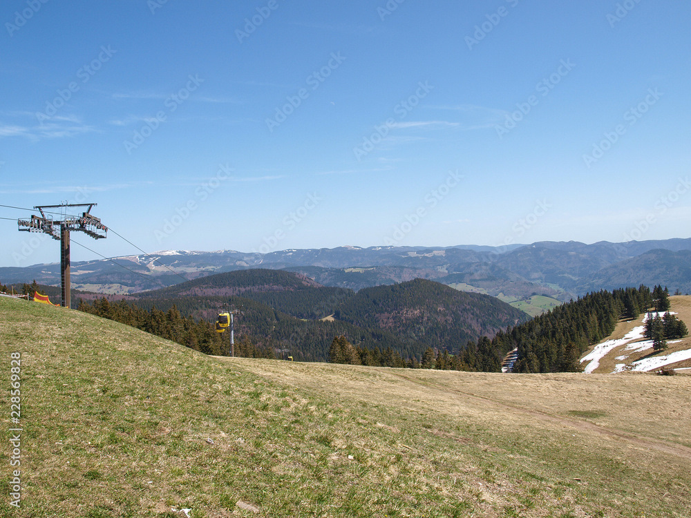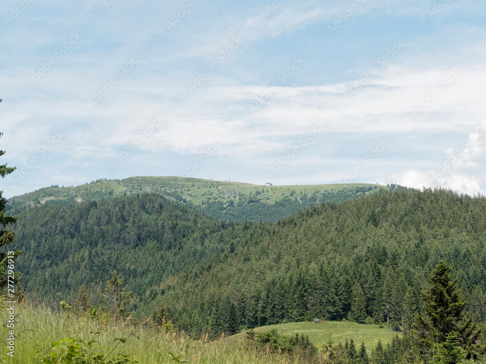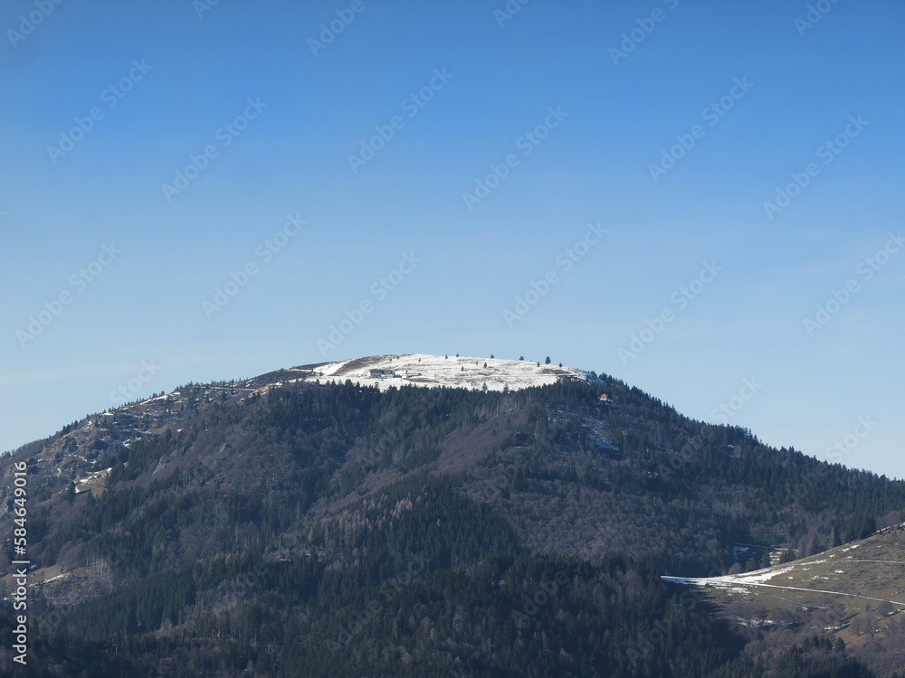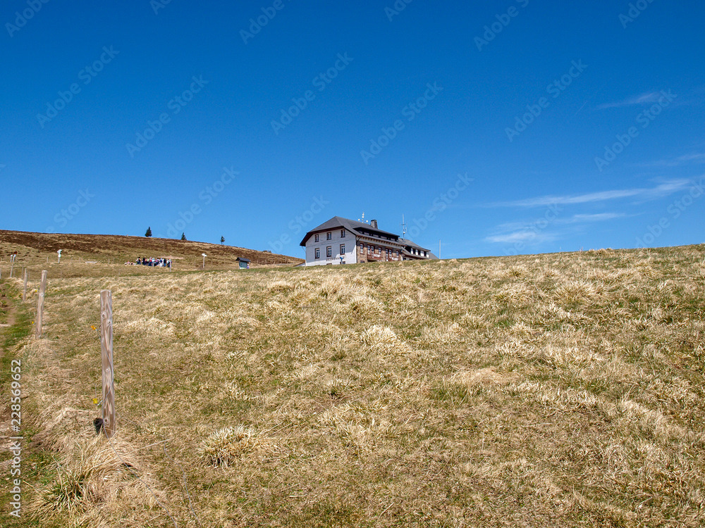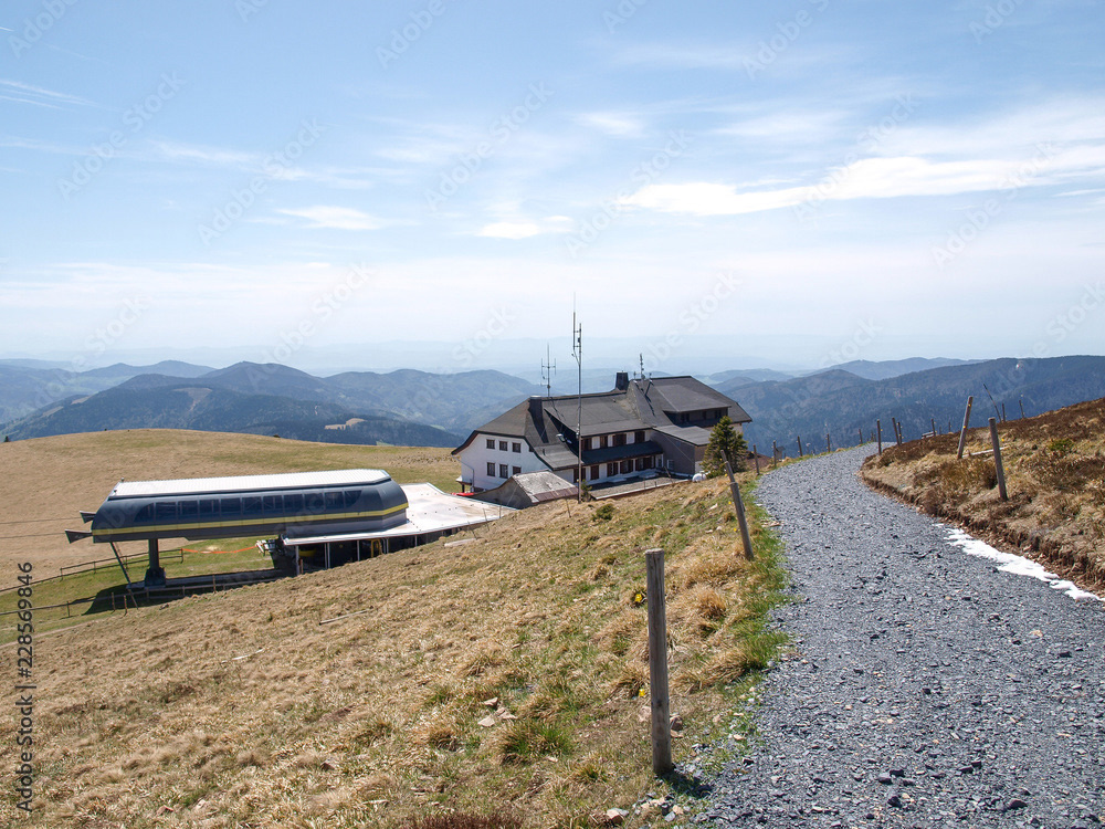Majestätischer Berg  mit gewölbtem Gipfel, das Belchenhaus, Belchen-Seibahn. Schönster Aussichtsberg im Südschwarzwald