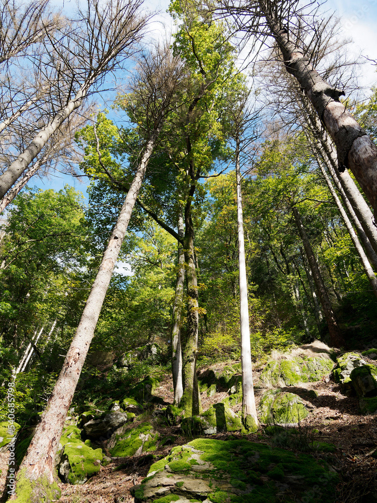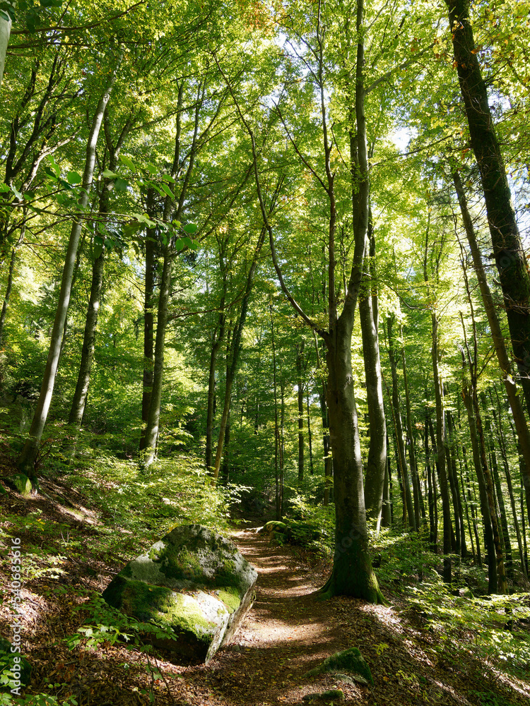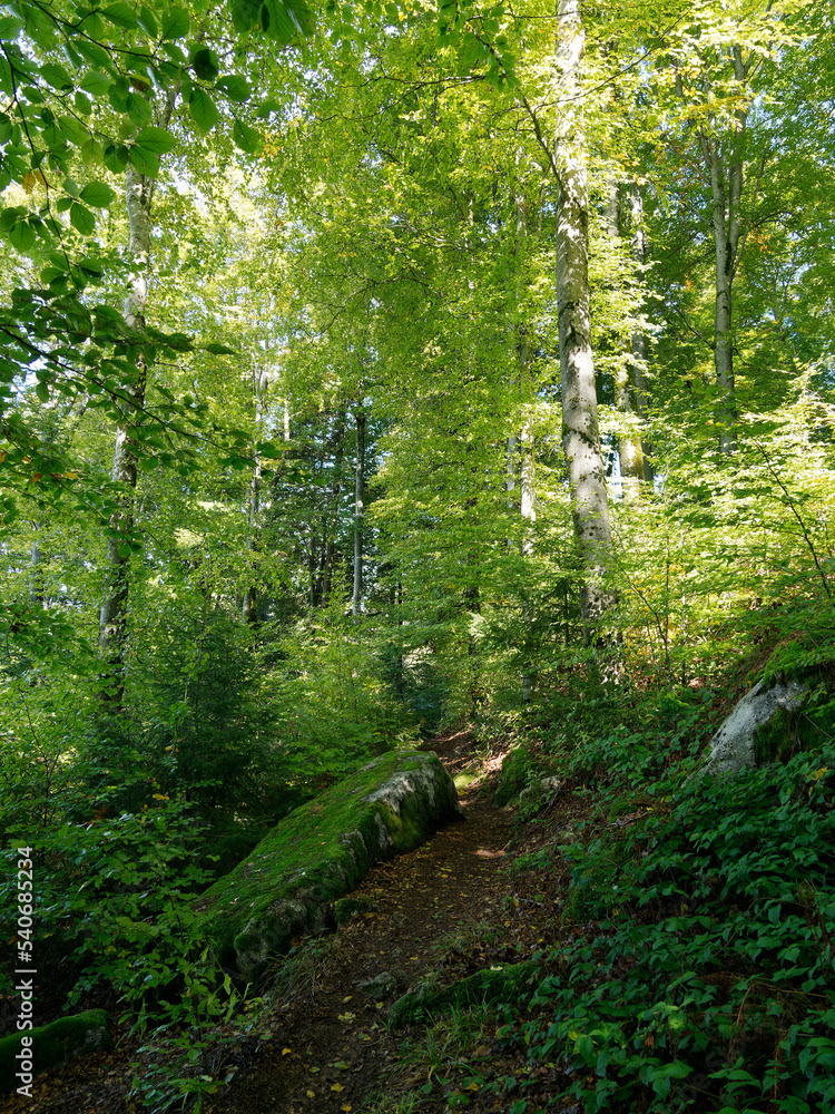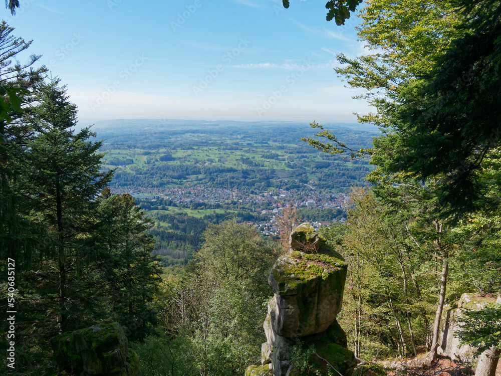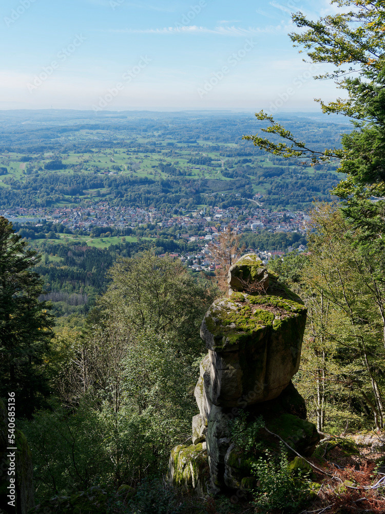 Ein wunderschöner Rundweg und wunderschöner Aussichtspunkt in das Rheintal. Klingenfelsen einen besonderen Felsen mit Felszackenüber den Pirschweg von Rüttehof zwischen Hütten und Wehr.