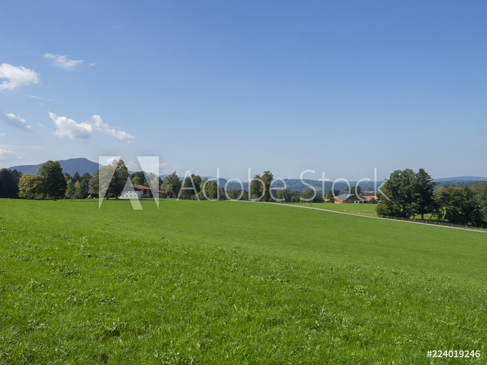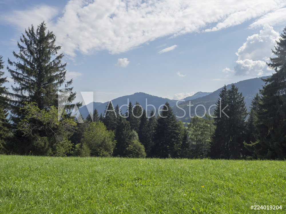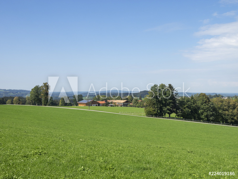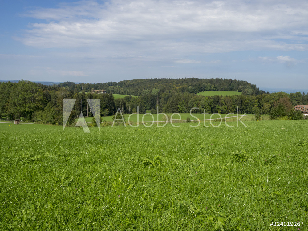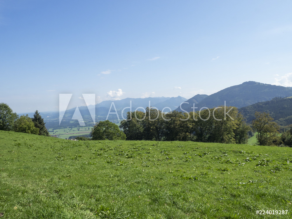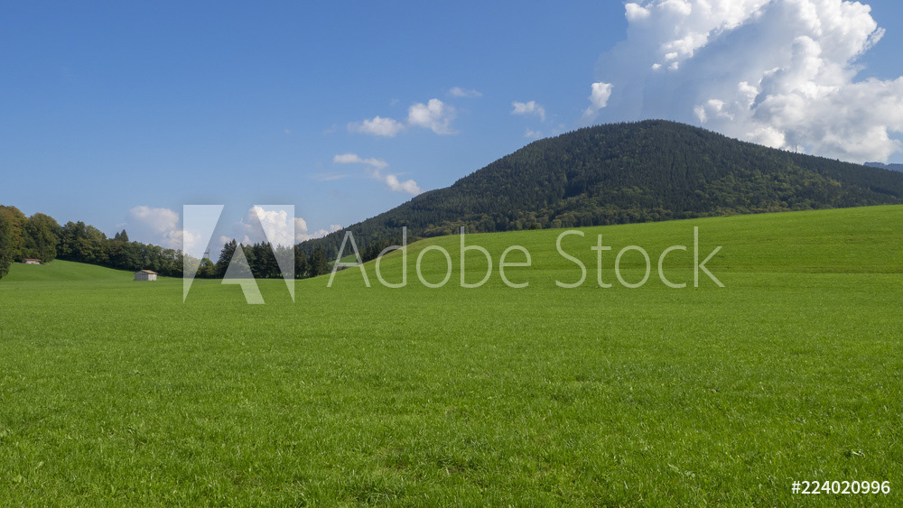 Hügel und Wiesen rund um Hundham. Gemeinde von Fischbachau im Landkreis Miesbach in Bayern im Tal der Leitzach  am Fuß des Schwarzenbergs