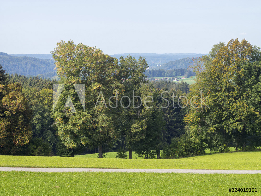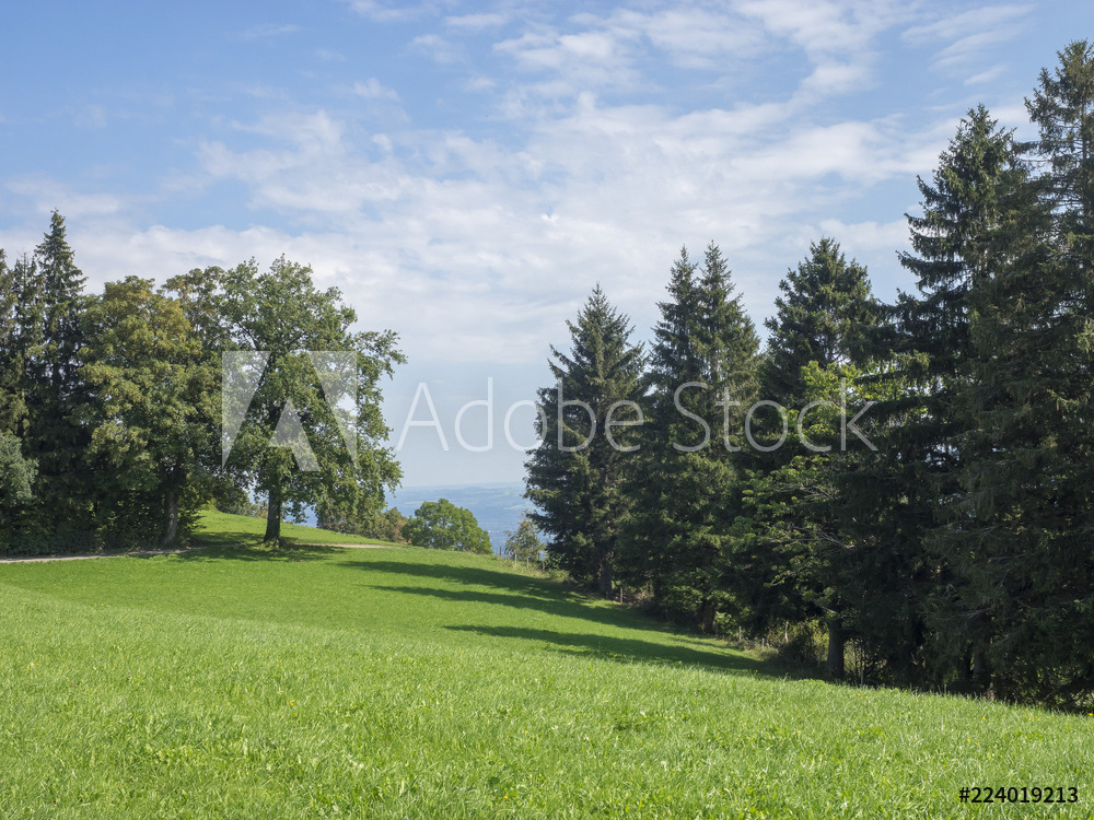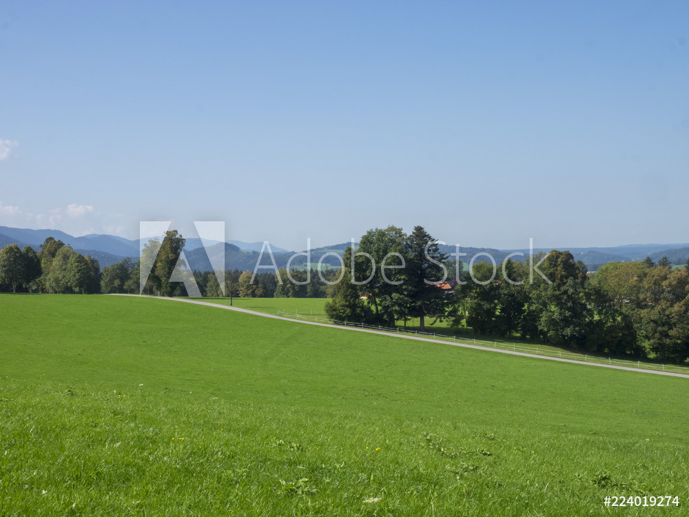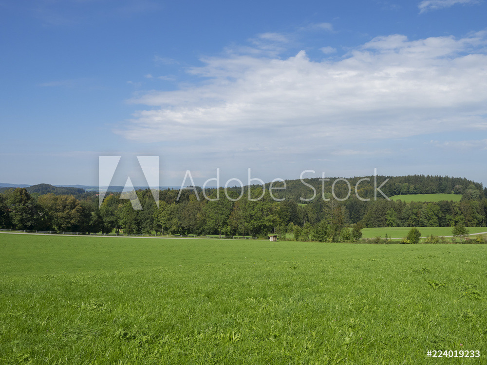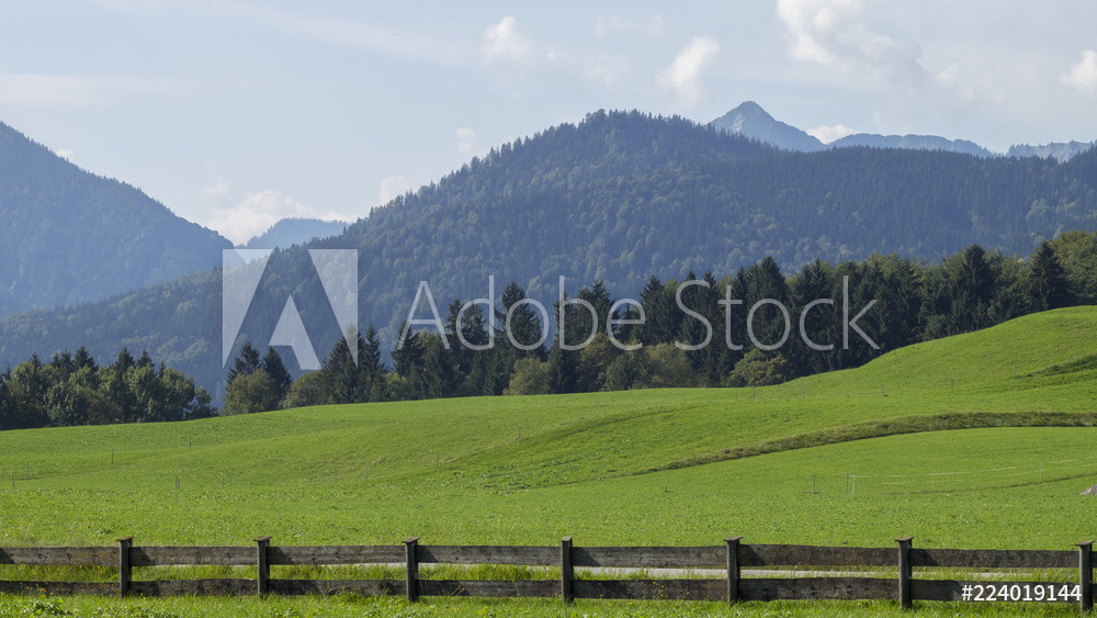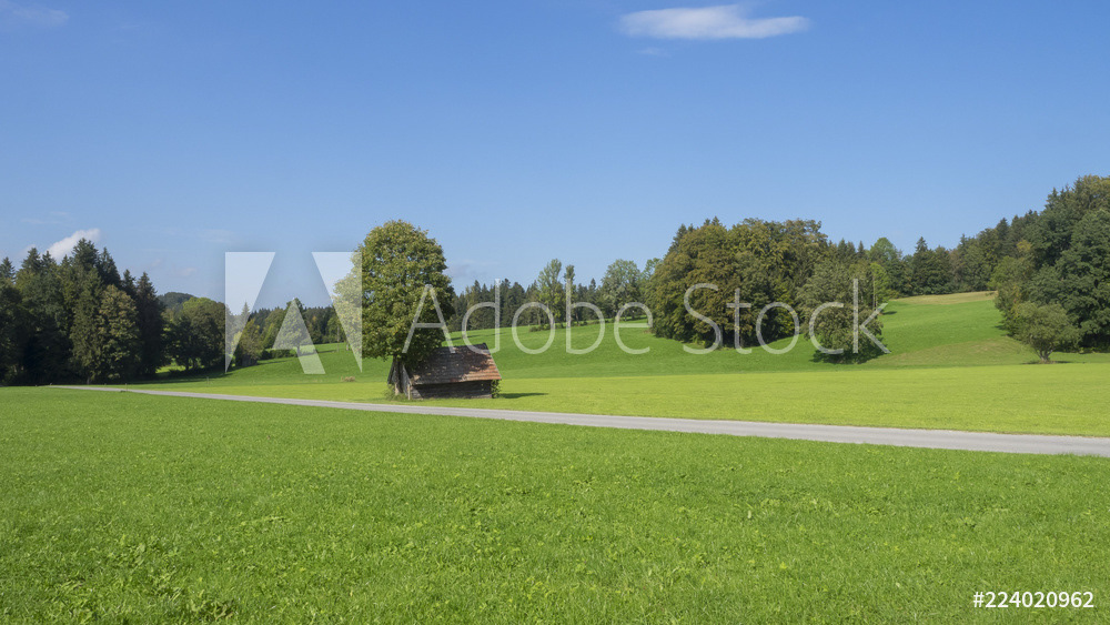 Hügel und Wiesen rund um Hundham. Gemeinde von Fischbachau im Landkreis Miesbach in Bayern im Tal der Leitzach  am Fuß des Schwarzenbergs