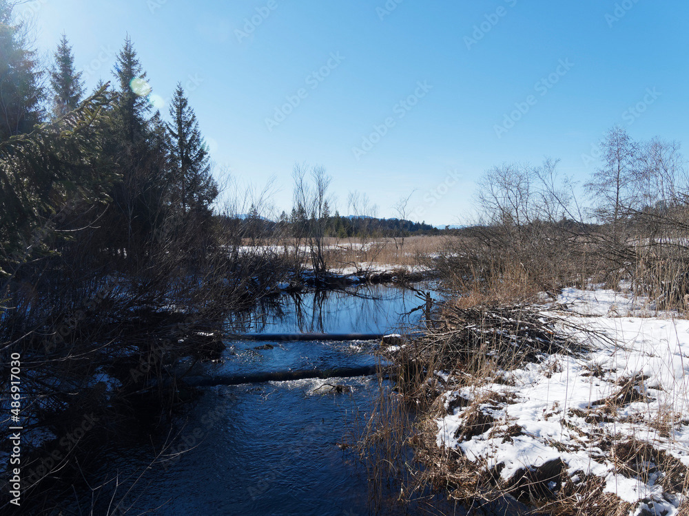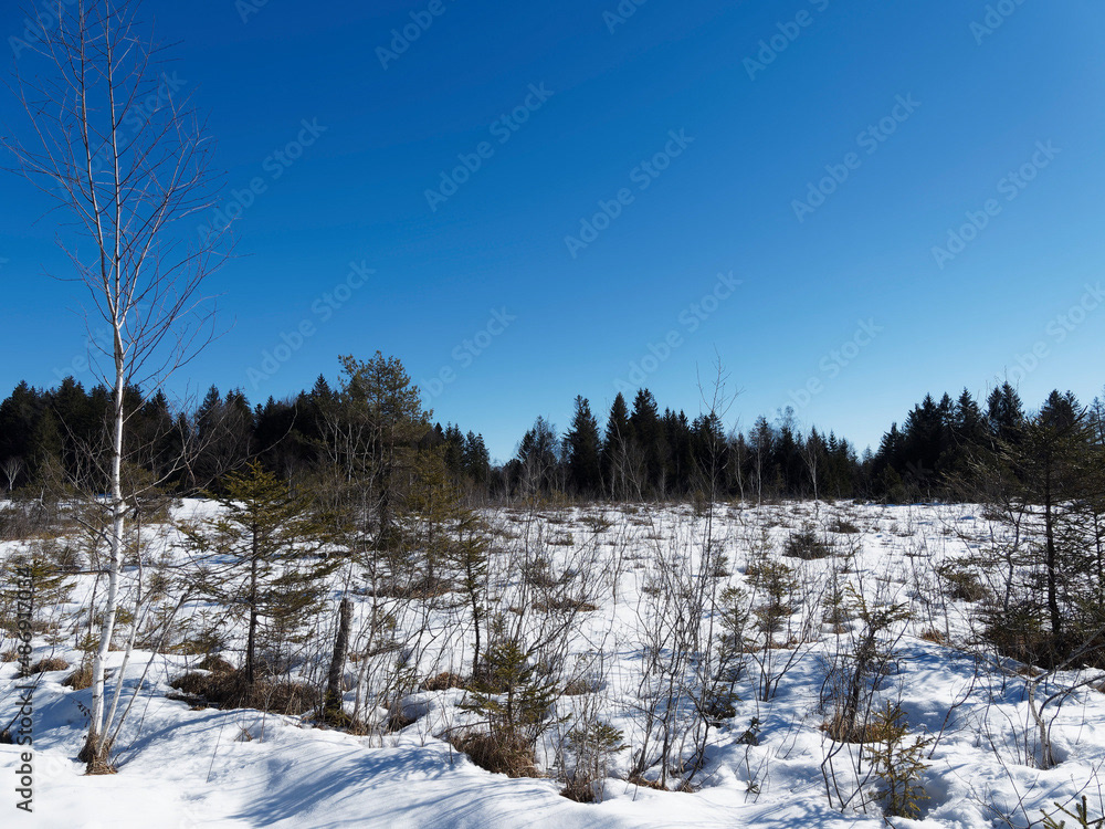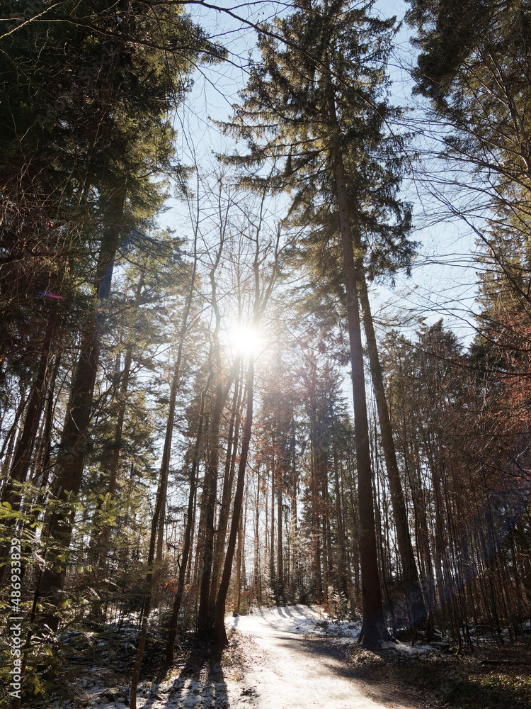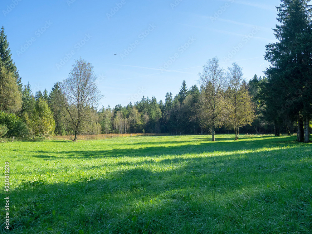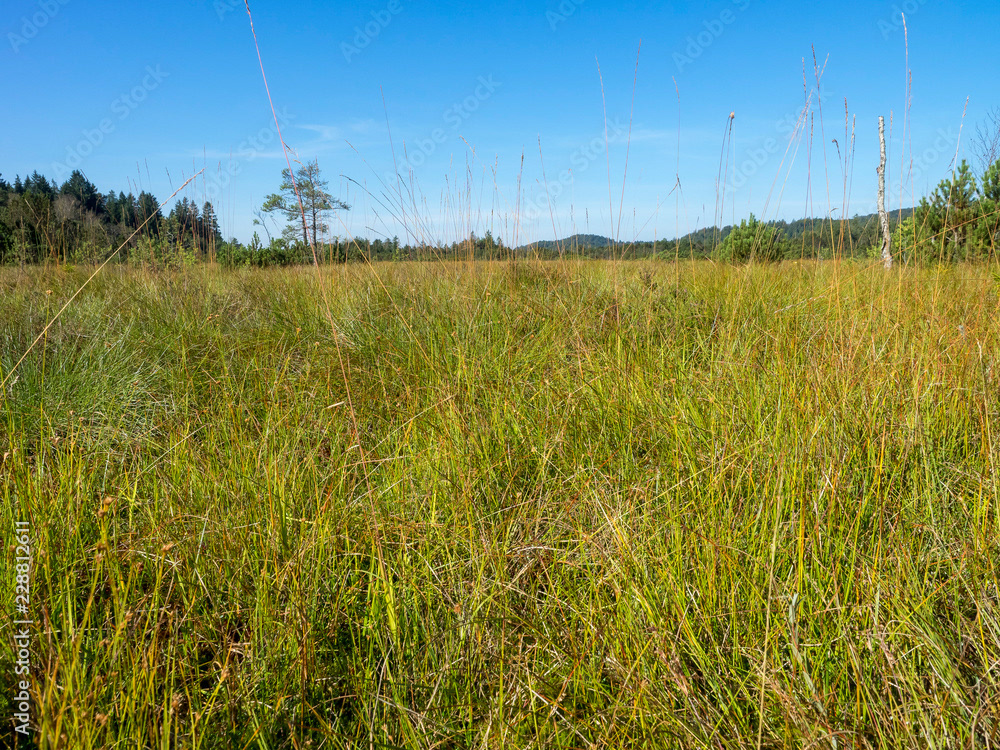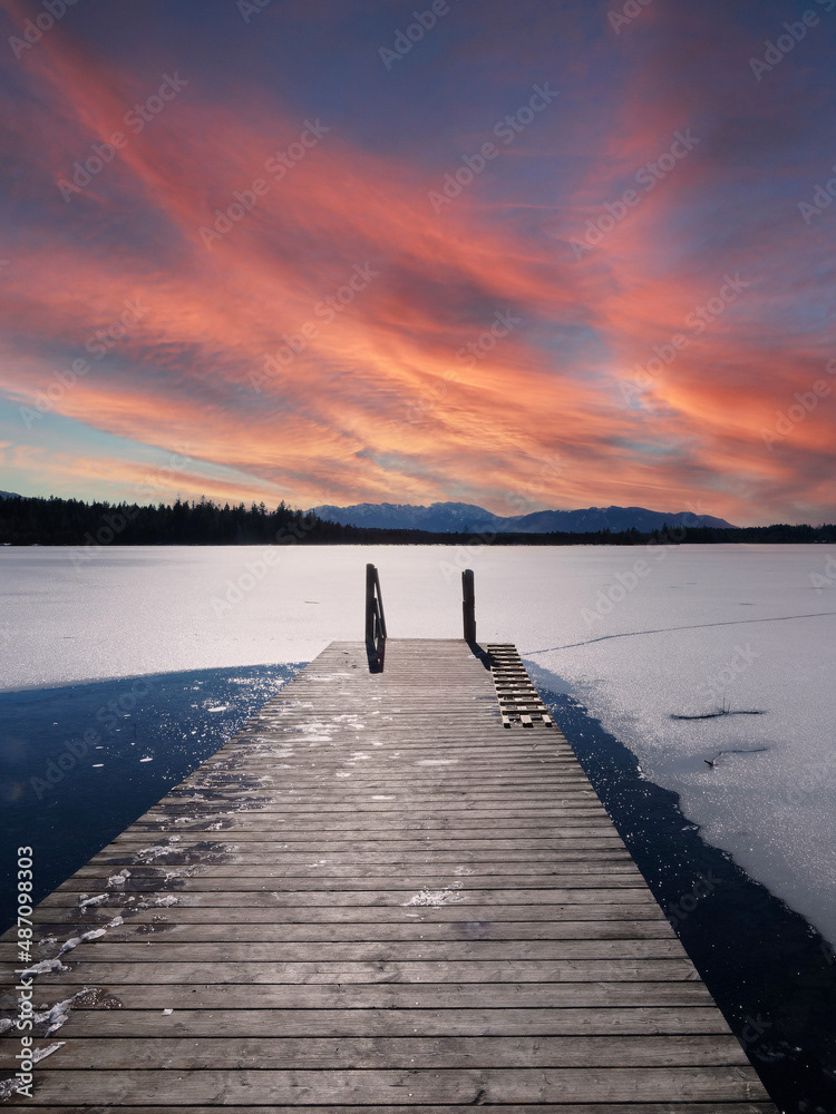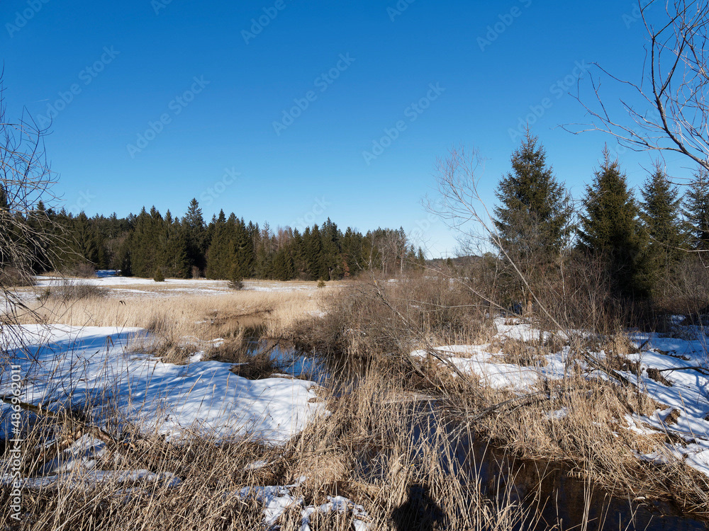 Kirchsee unterhalb von Kloster Reutberg in Sachsenkam nordöstlich von Bad Tölz in Oberbayern. Mystischer Moorsee am Nordrand  des Naturschutzgebietes Ellbach- und Kirchseemoor.