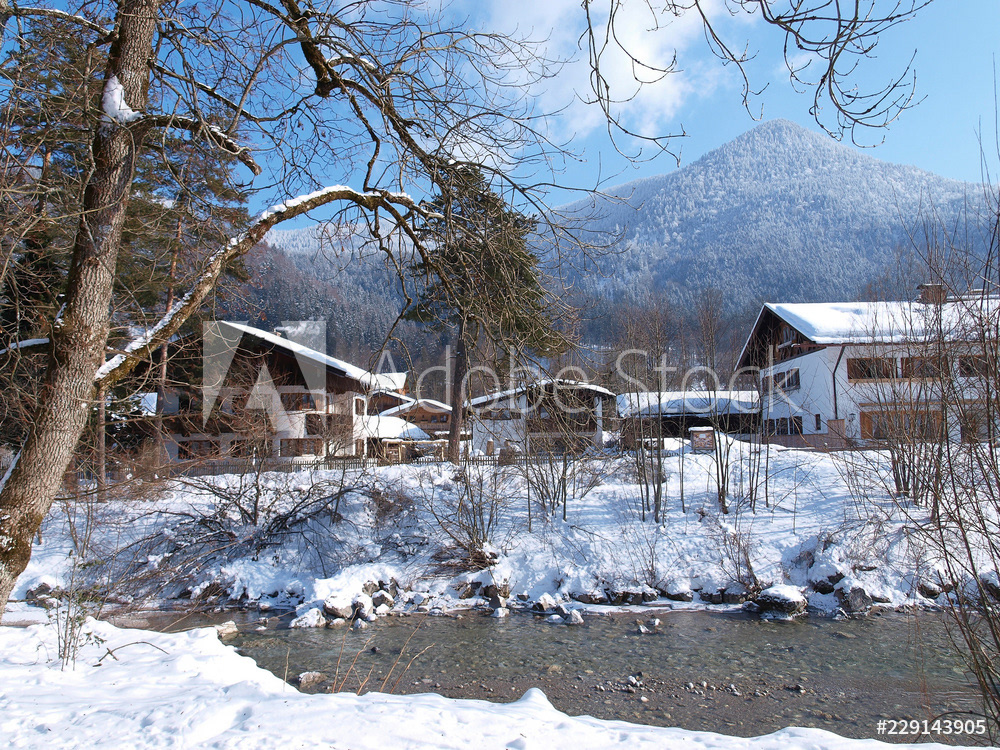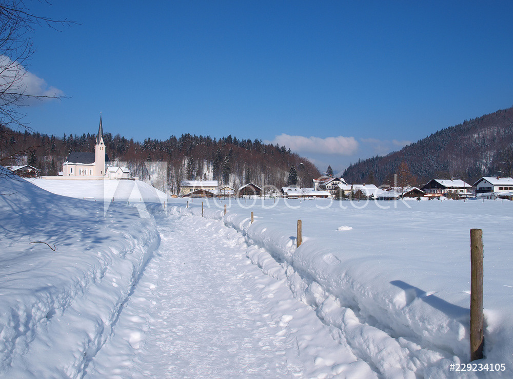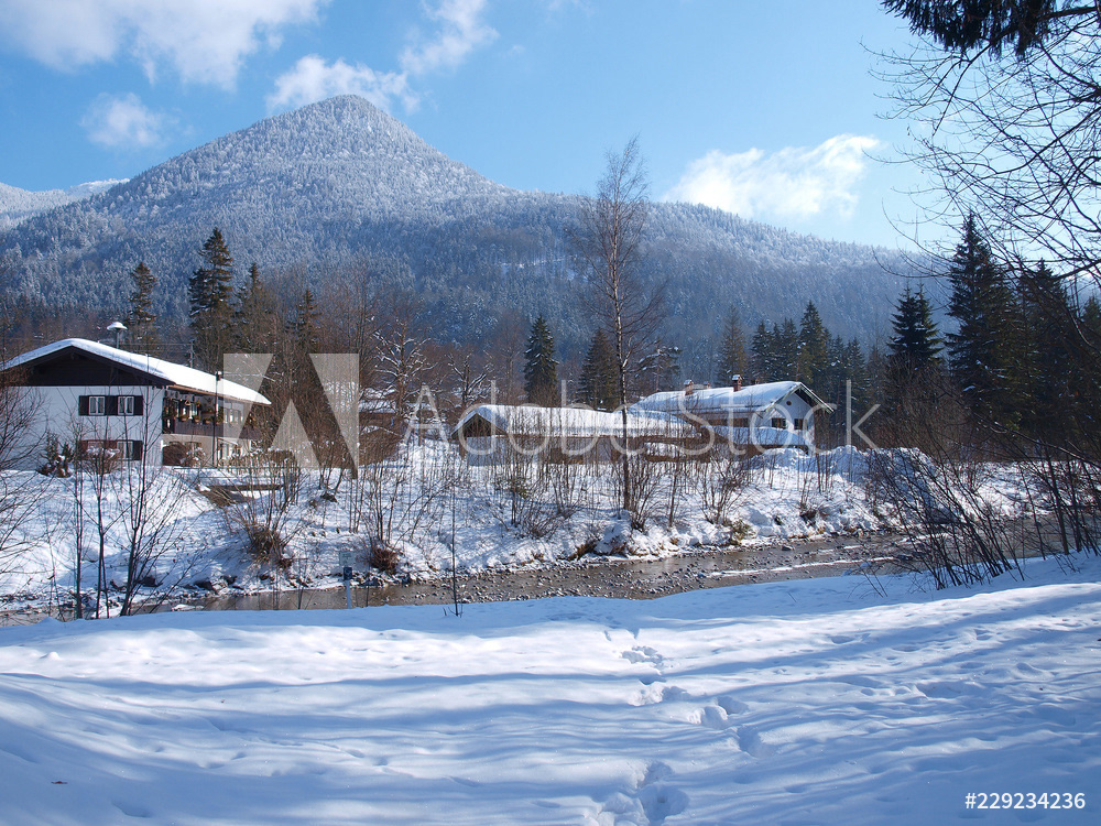 Kreuth. Heilklimatischer Kurort entlang der Weißach im Tegernseer Tal. Wanderweg im Sommer und Winter mit Traumhafte Ausblicke auf die beeindruckende Voralpenlandschaft
