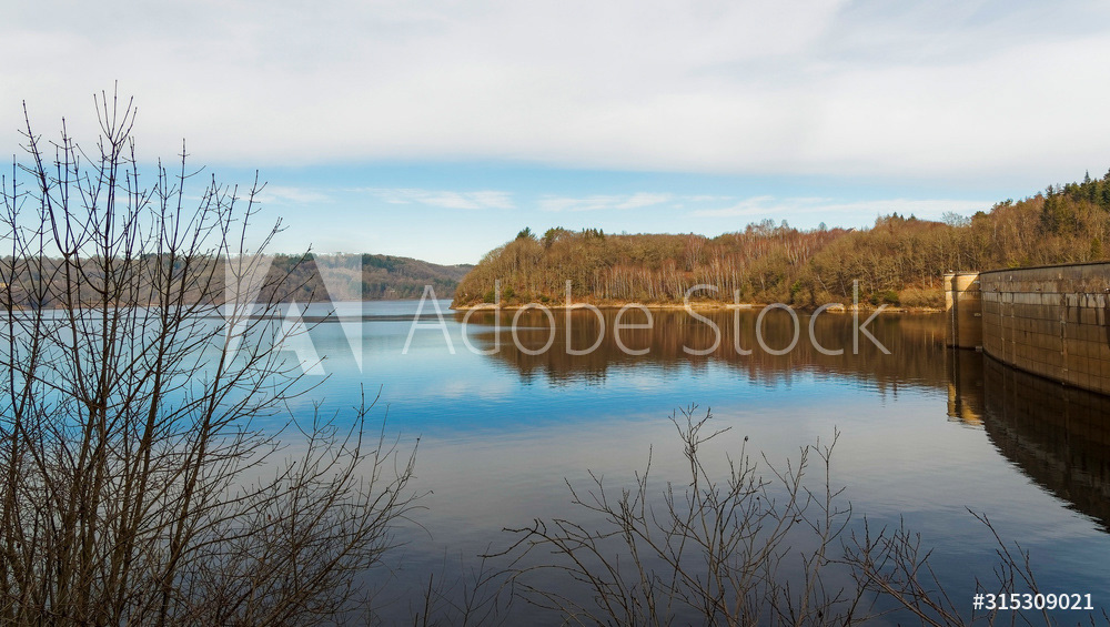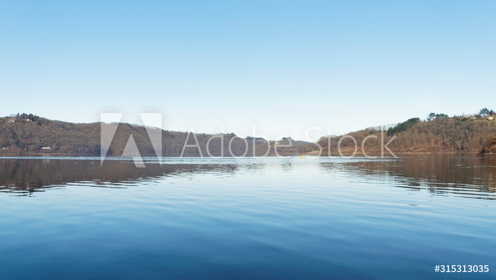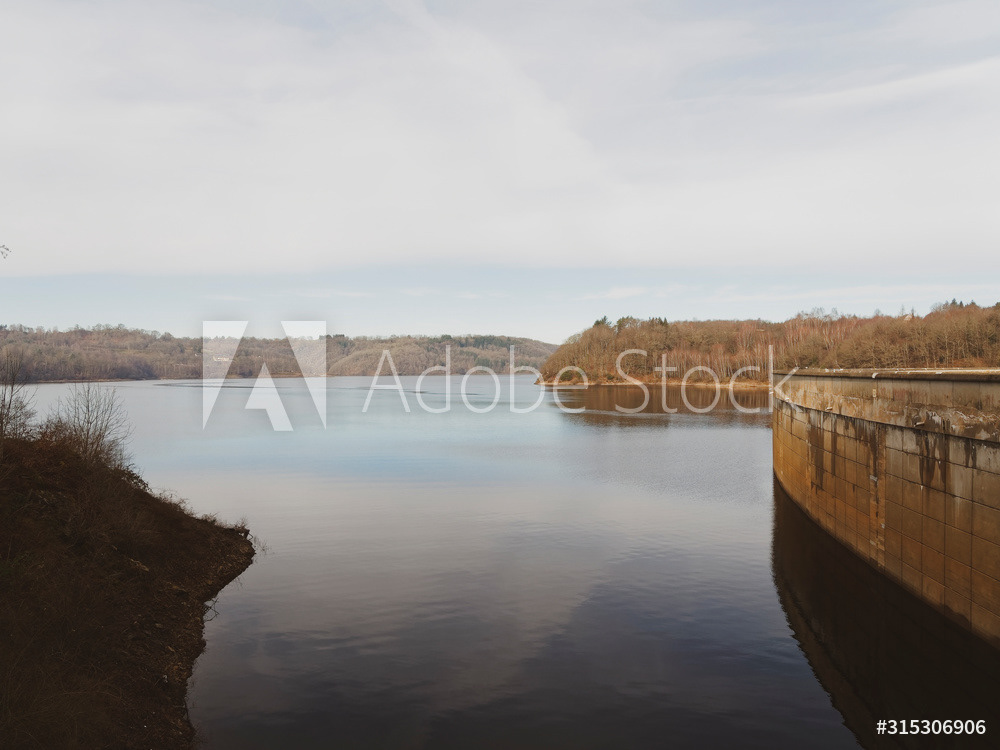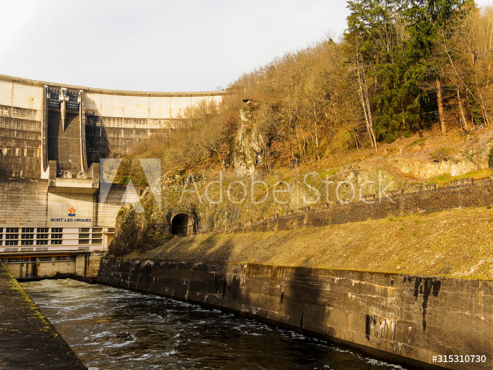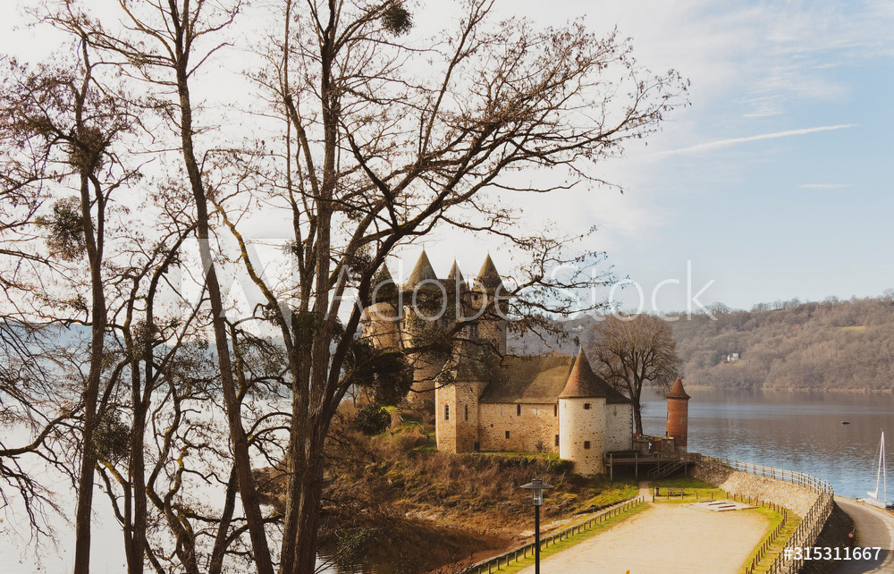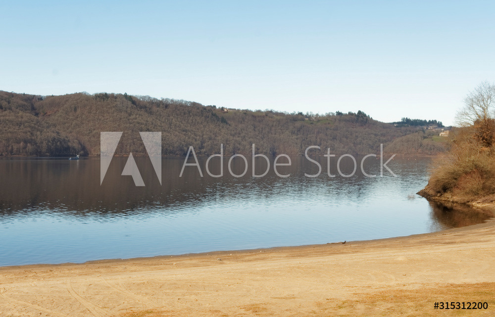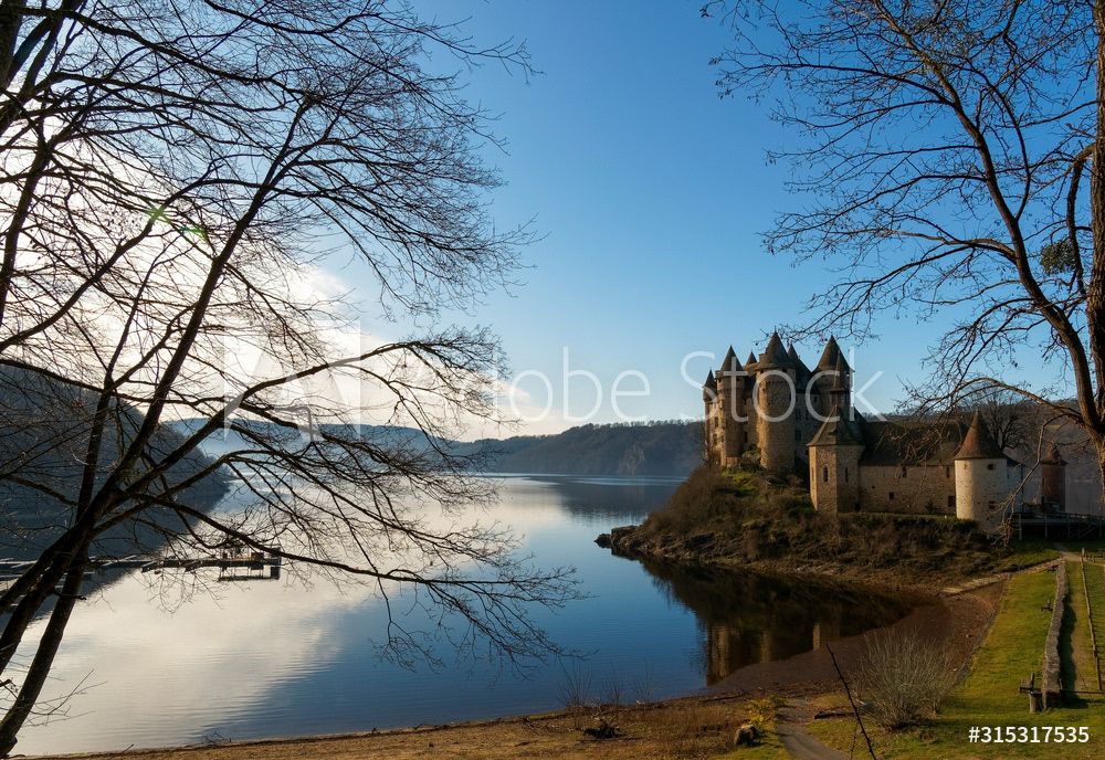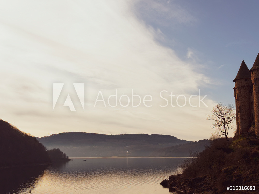 Le lac et barrage de Bort-les-Orgues ou lac du Château de Val dans le Massif Central, s'étend sur les département de Corrèze, Cantal et Puy-de-Dôme. Alimenté par la Dordogne. Le château de Val sur le territoire de Lanobre