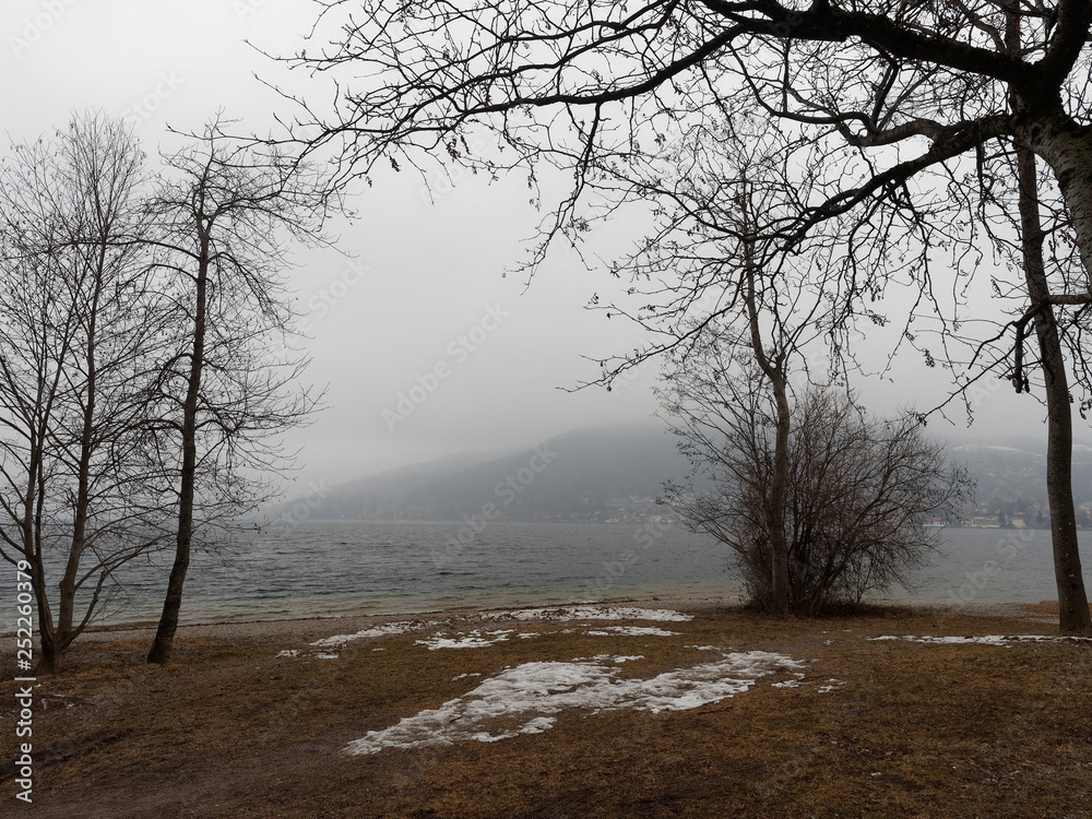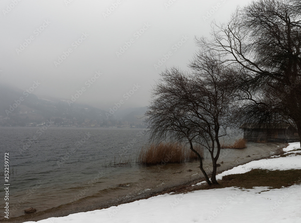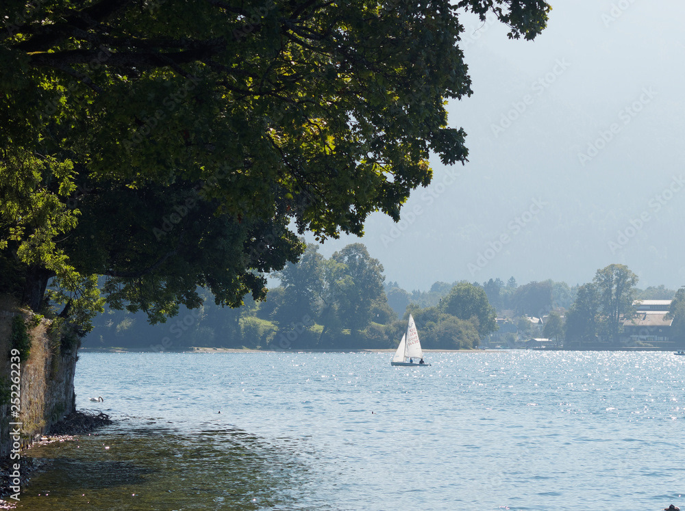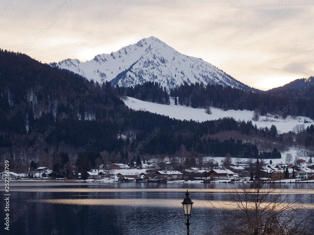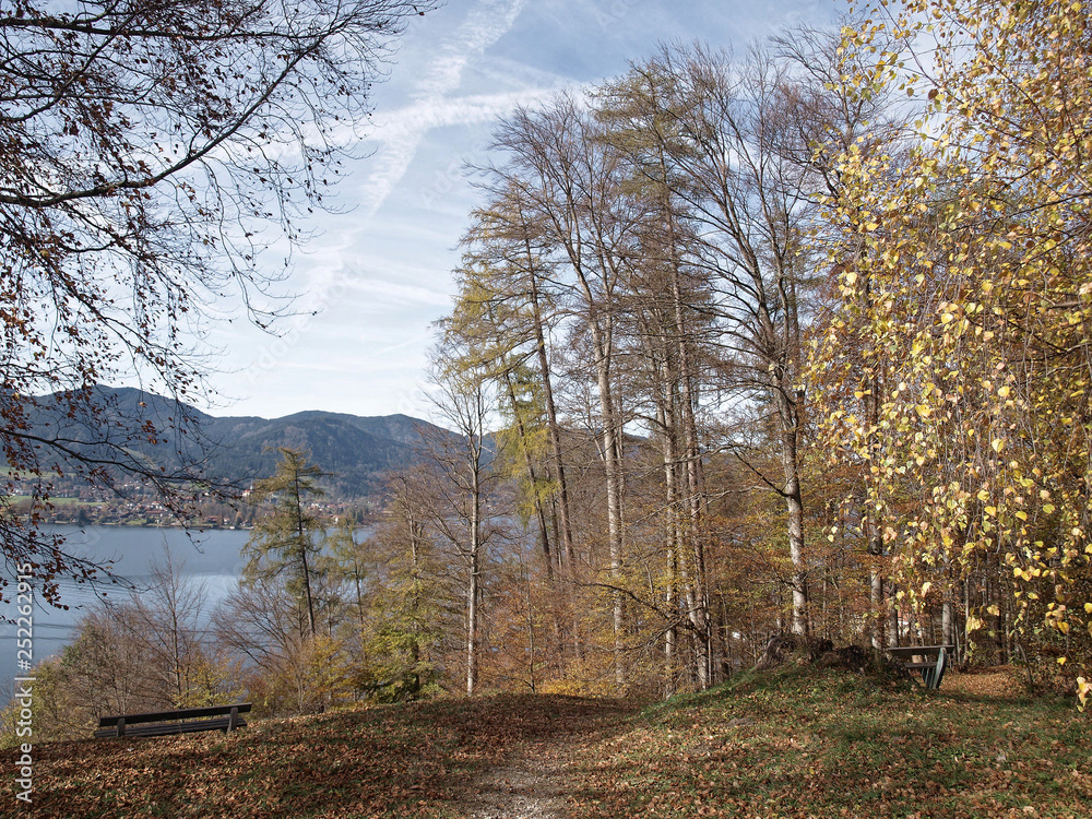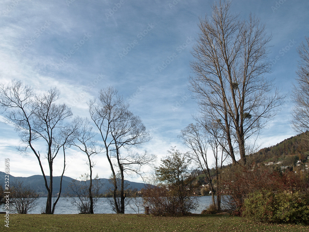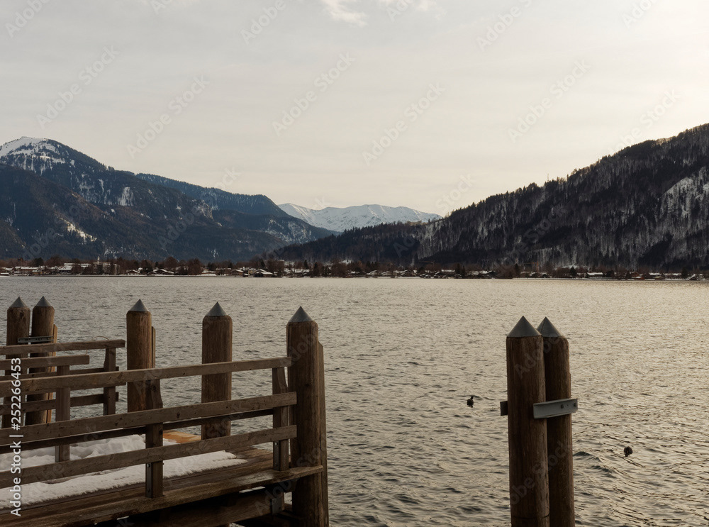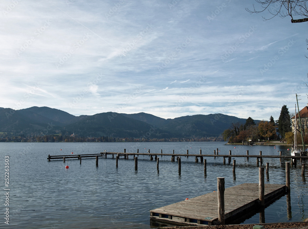 Der See ist von bewaldeten Hügeln, am Fuße der Gipfel von der Wallberg, Hirschberg umgeben. Der Ufer mit Schilf gesäumt. Gmund im Norden, Rottach-Egern im Süden und Bad Wiessee im West.
