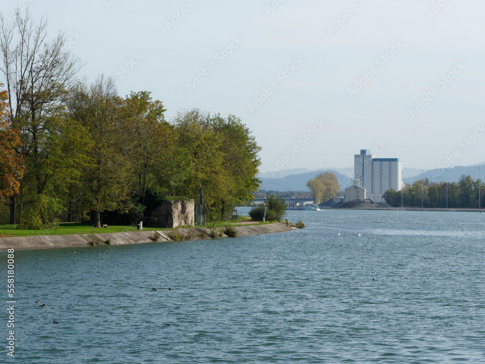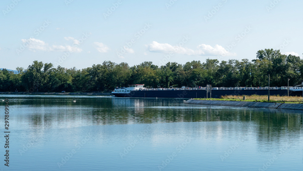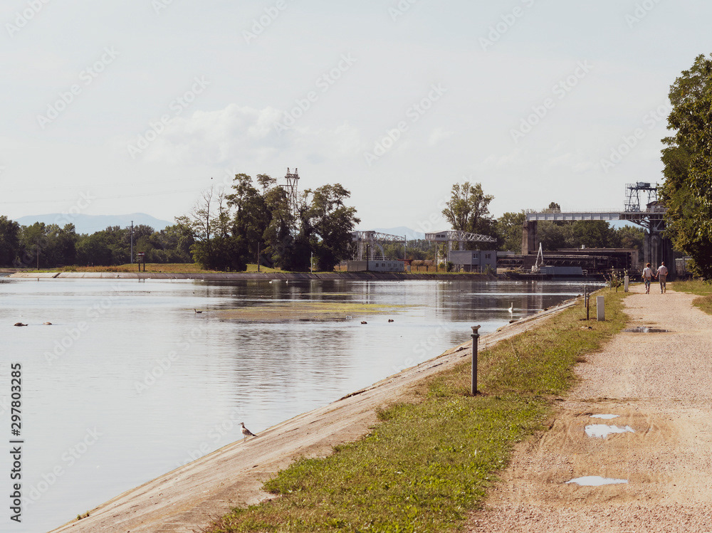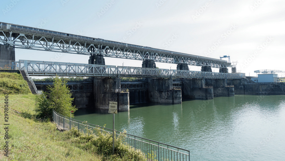 Stauwehr Märkt am Altrhein und Dam on the Rhine leitet einen großen Teil des Rheinwassers in den Grand Canal d'Alsace ab und Navigation nach Basel für Boote