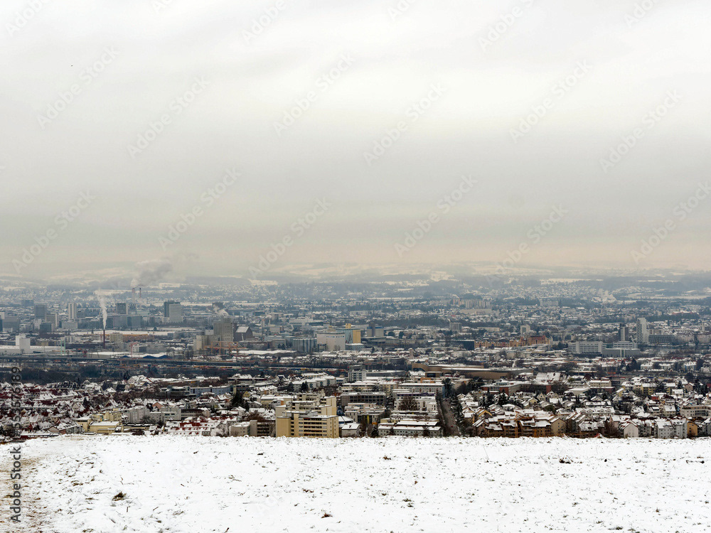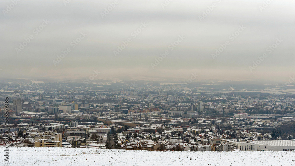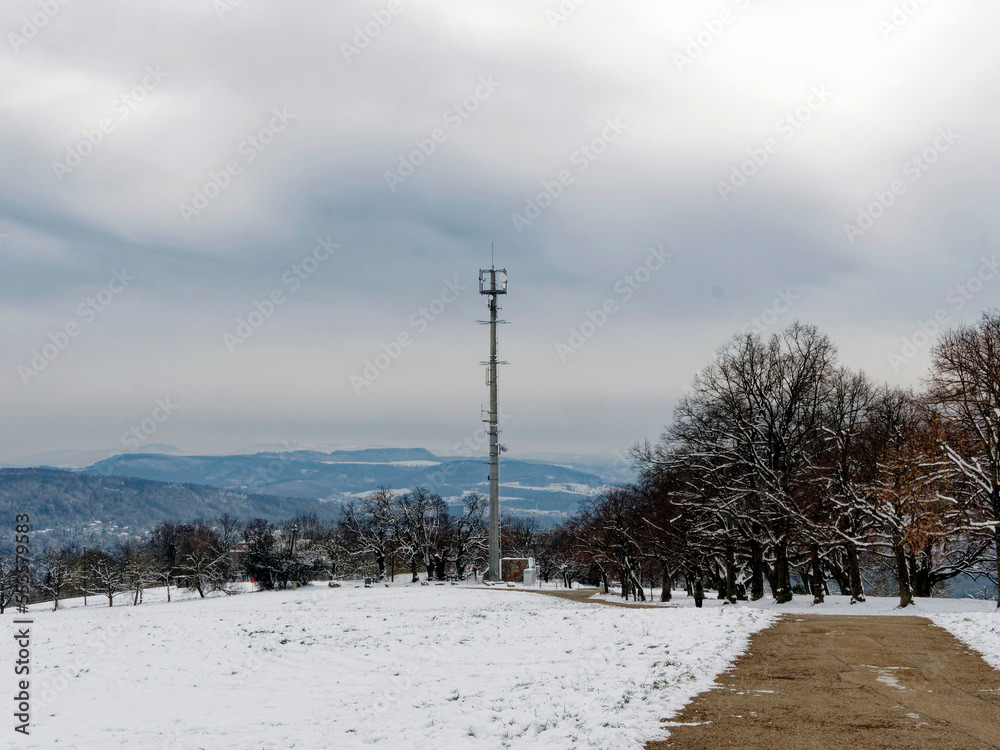 Tüllinger Höhe, ein Berg westlich von Lörrach mit einer bewaldeten Hochfläche und Panoramablick auf Frankreich im Westen, Basel im Süden und den Schwarzwald im Norden