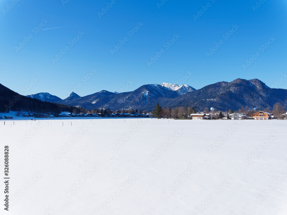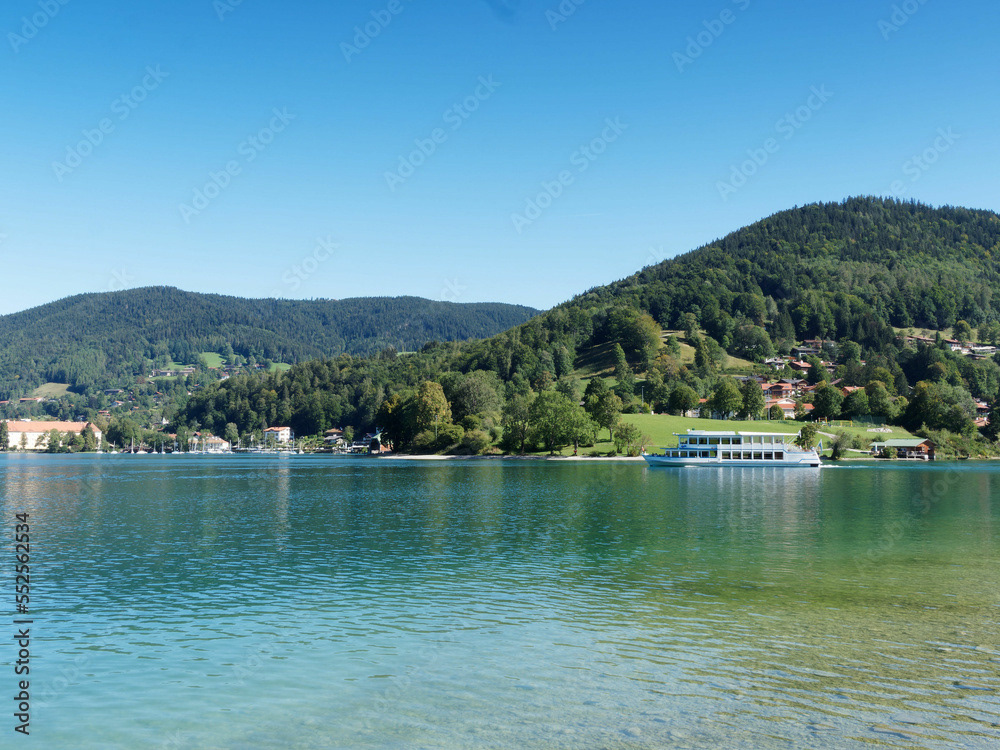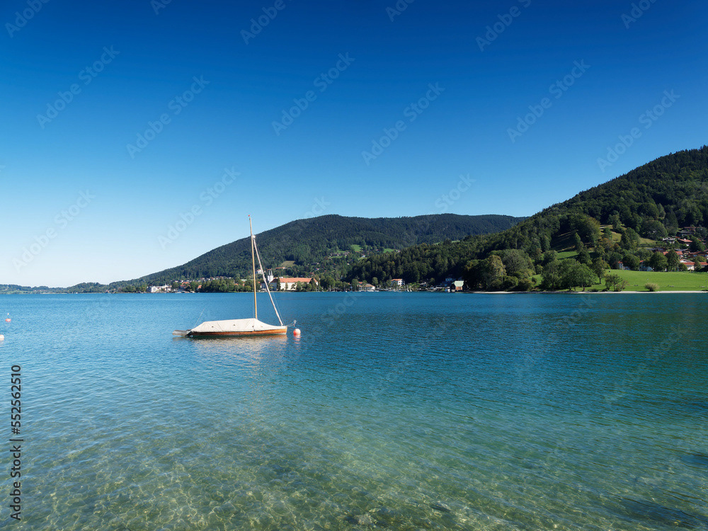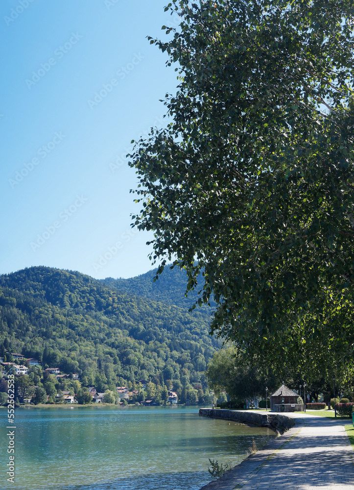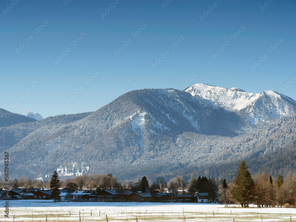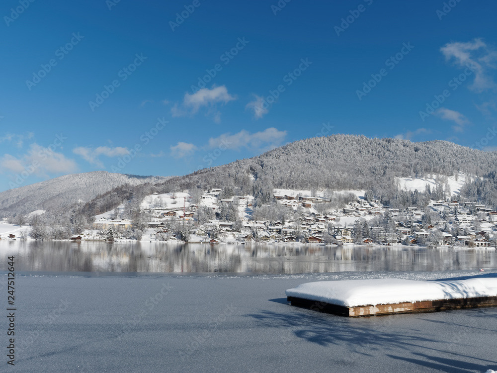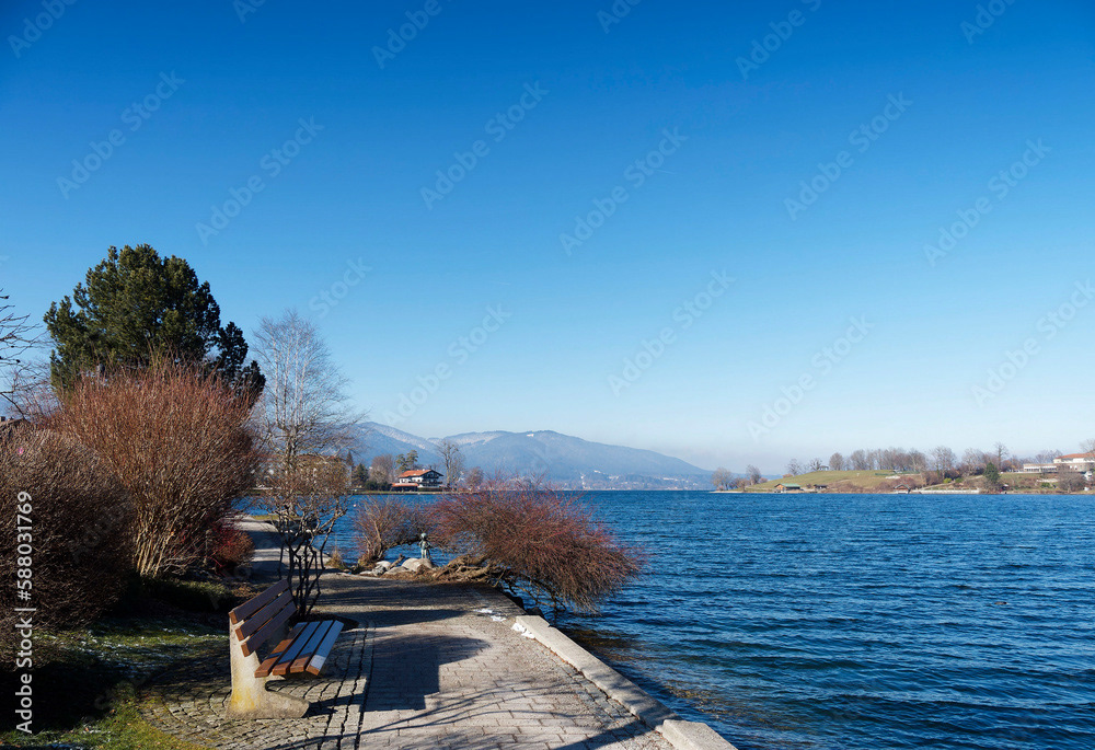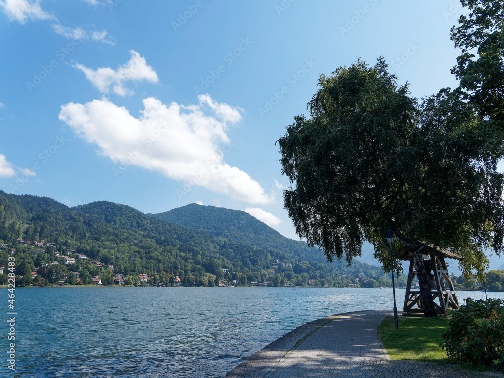 Rottach-Egern am Südufer des Tegernsees umgeben von bezaubernden Landschaftenam Fuß des Wallbergs. Eine idyllische Kirche mit Blick auf die Bayerischen Gipfel