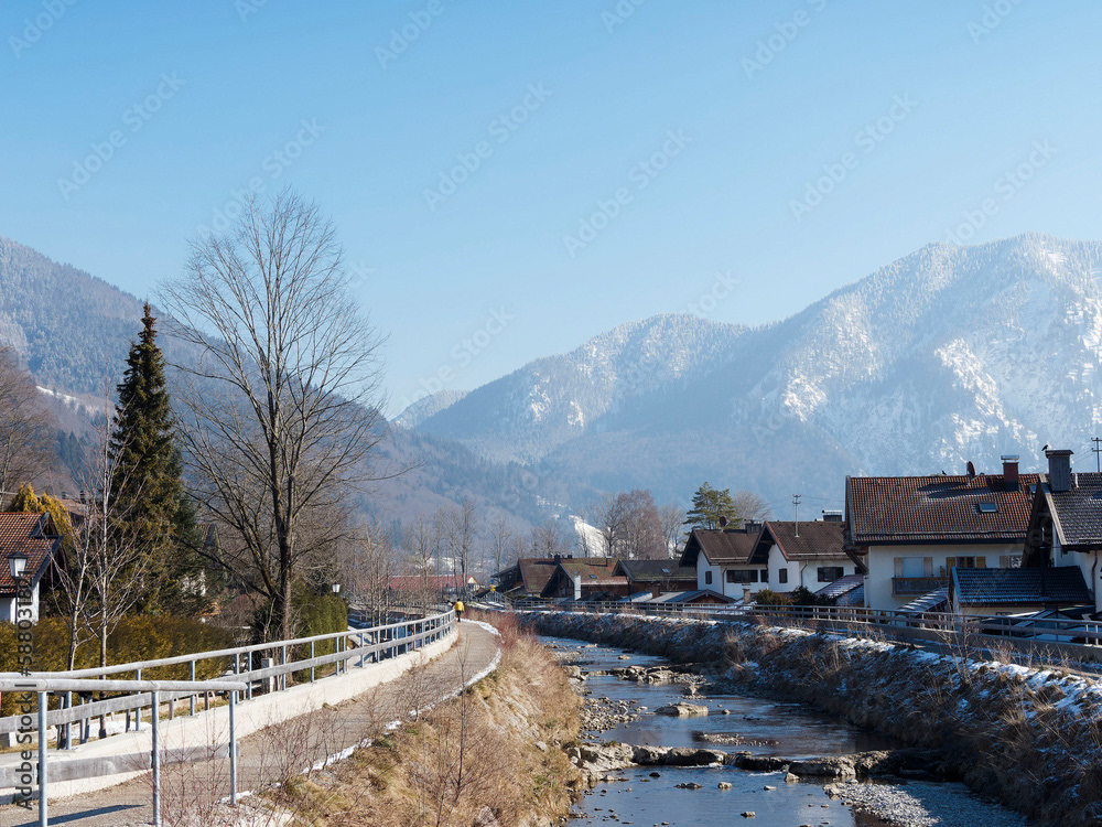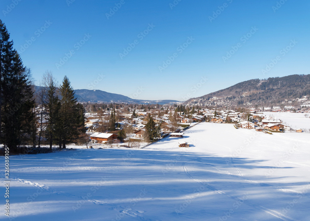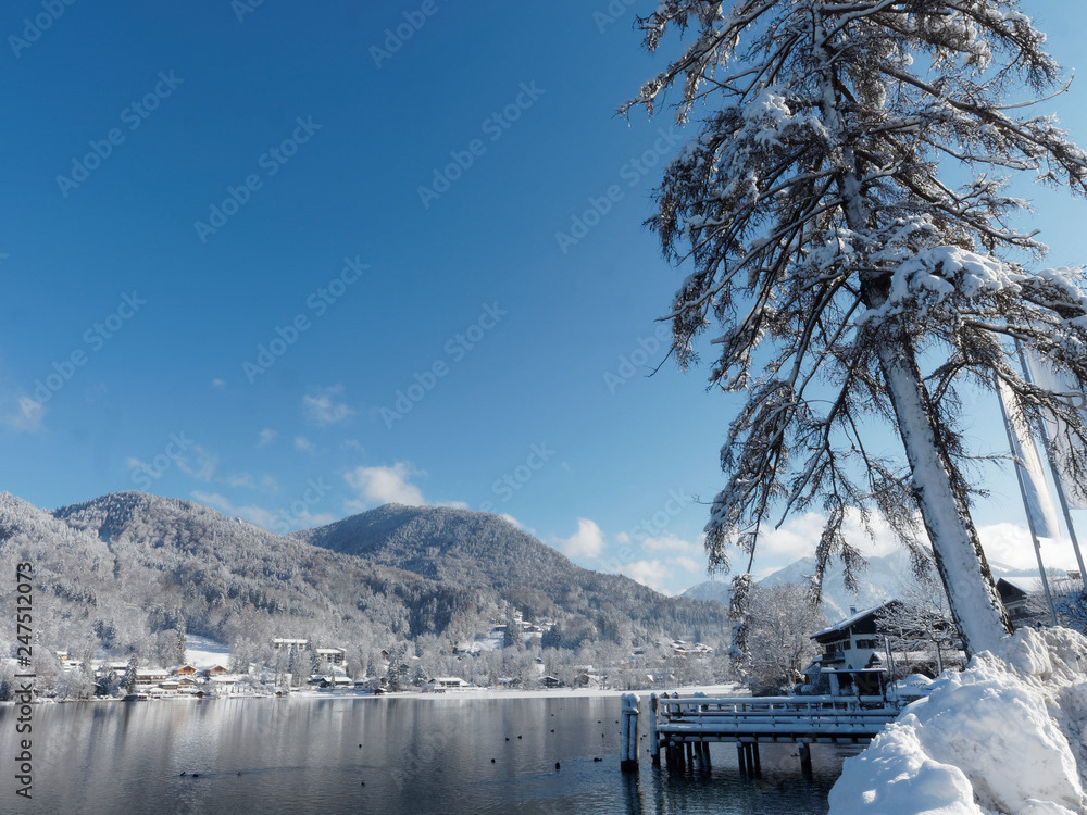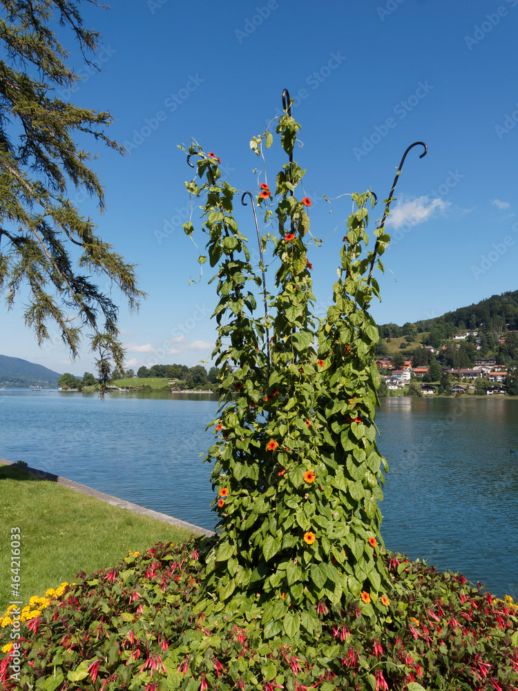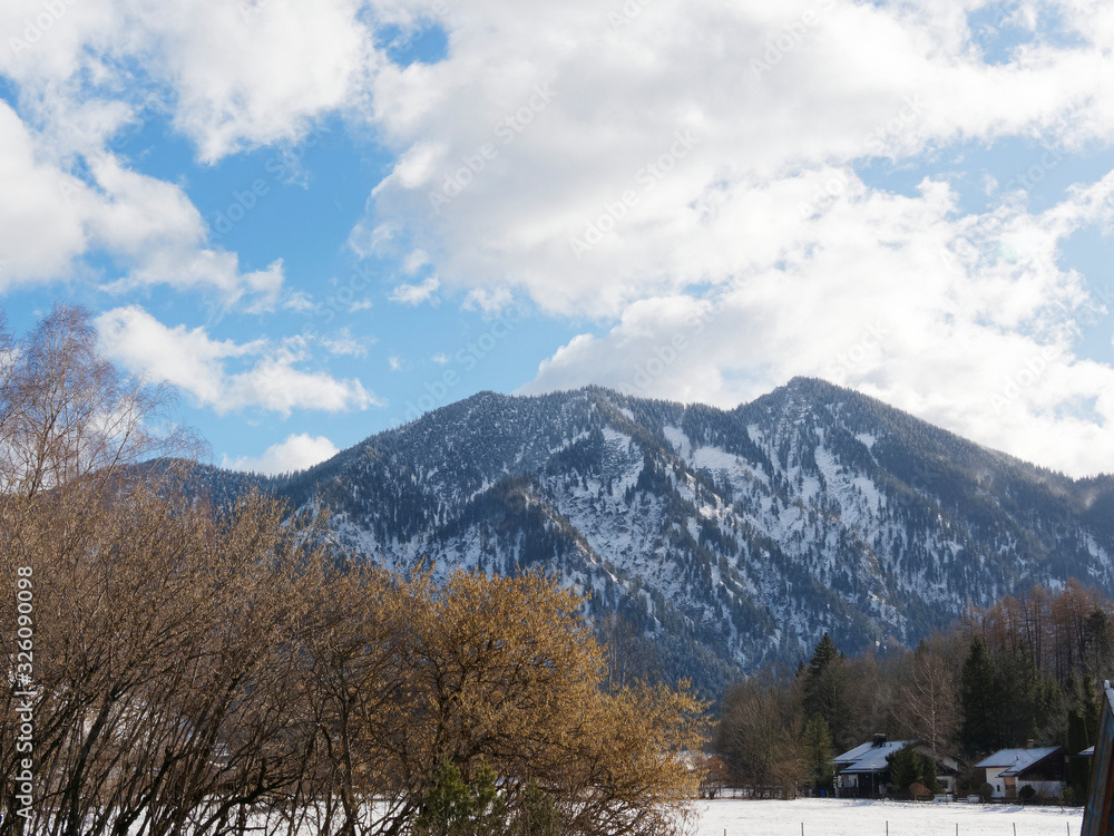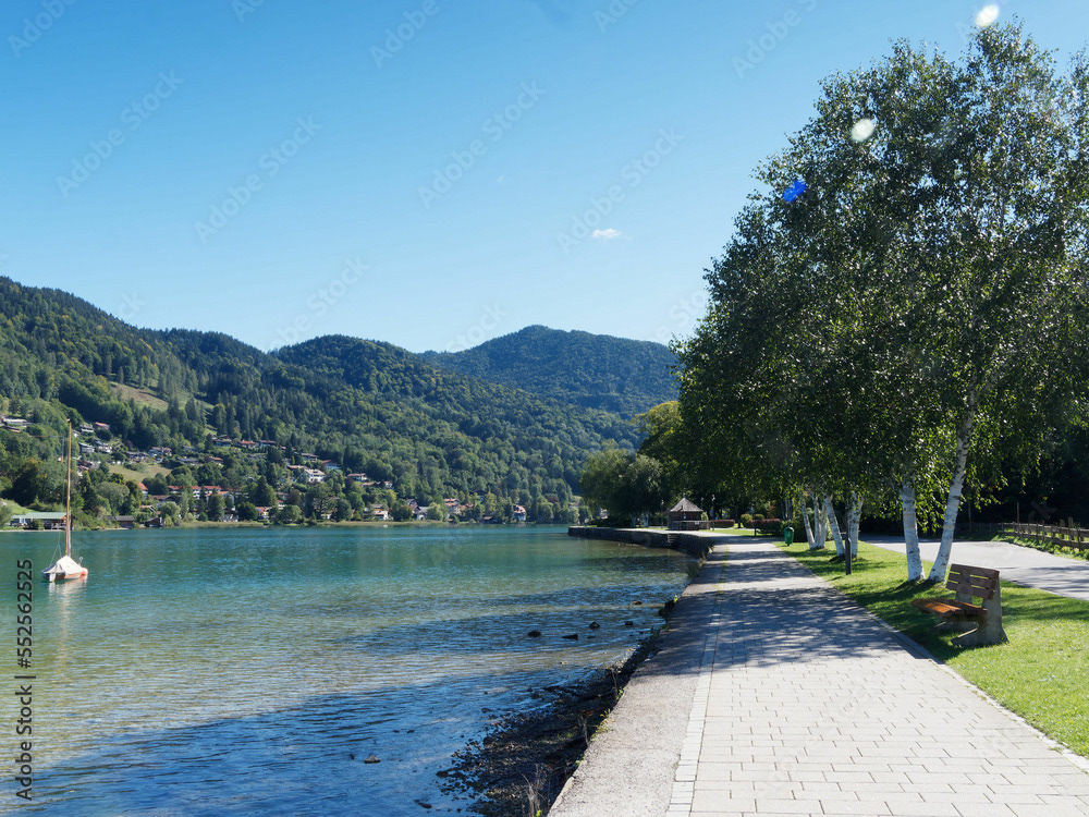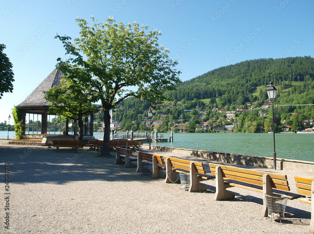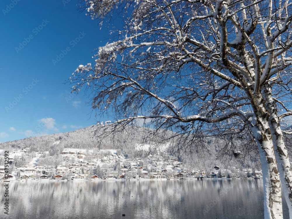 Rottach-Egern am Südufer des Tegernsees umgeben von bezaubernden Landschaftenam Fuß des Wallbergs. Eine idyllische Kirche mit Blick auf die Bayerischen Gipfel
