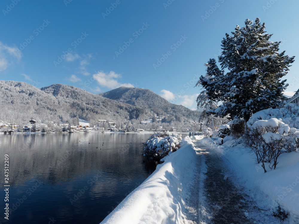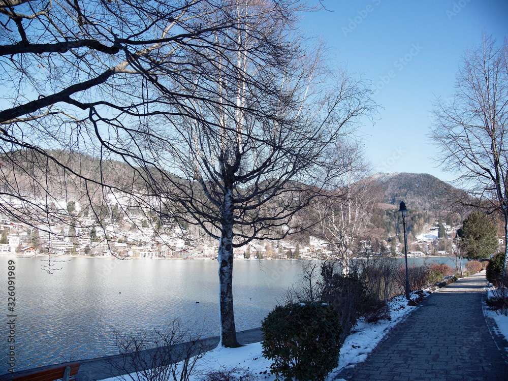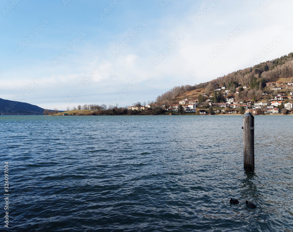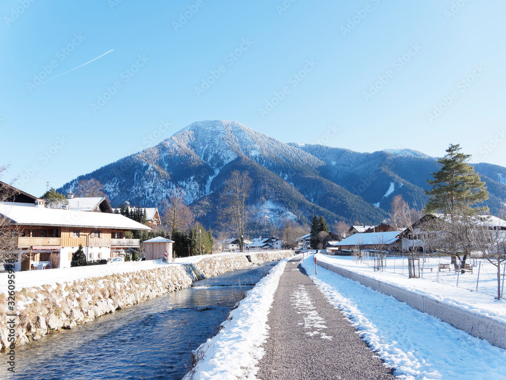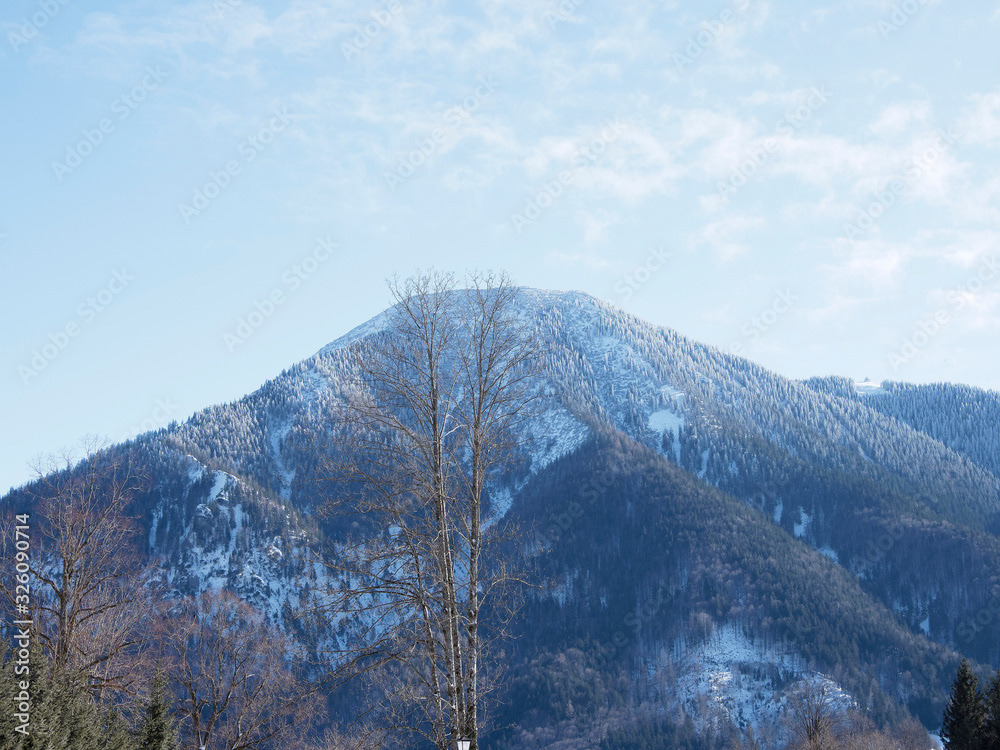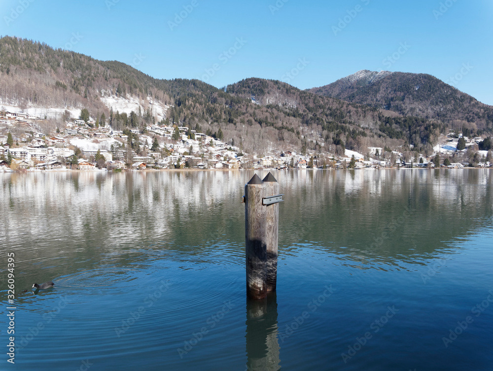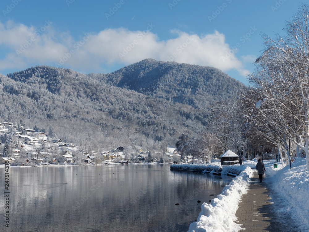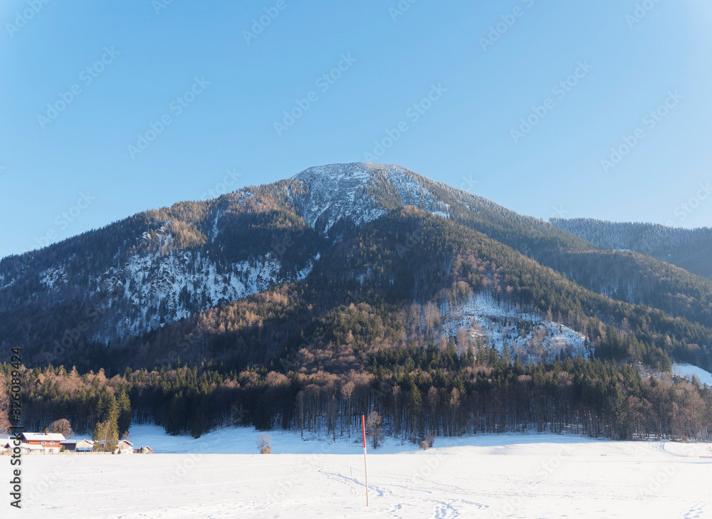 Rottach-Egern am Südufer des Tegernsees umgeben von bezaubernden Landschaftenam Fuß des Wallbergs. Eine idyllische Kirche mit Blick auf die Bayerischen Gipfel