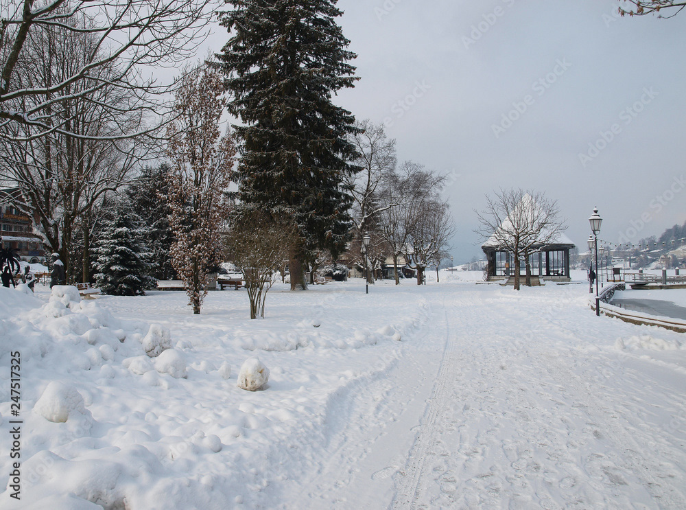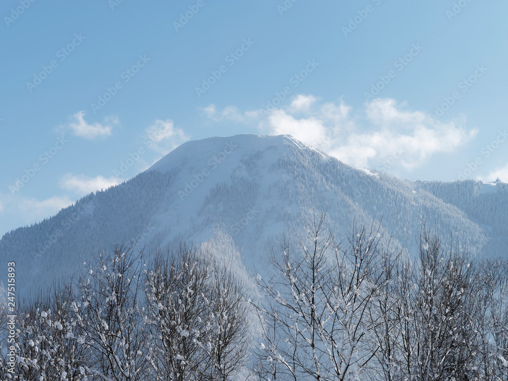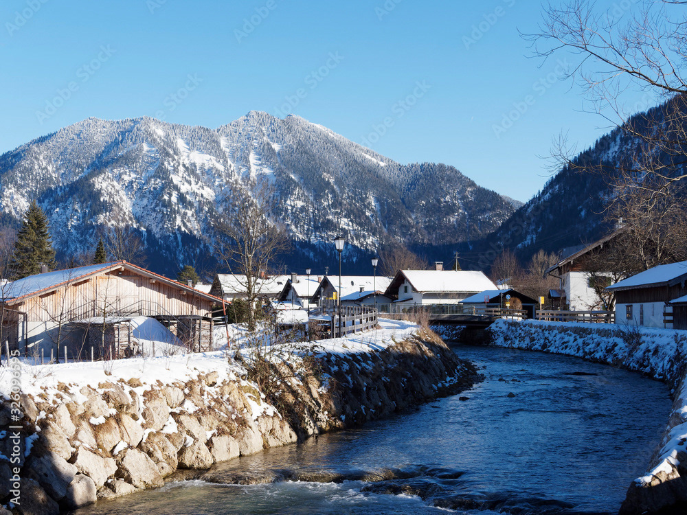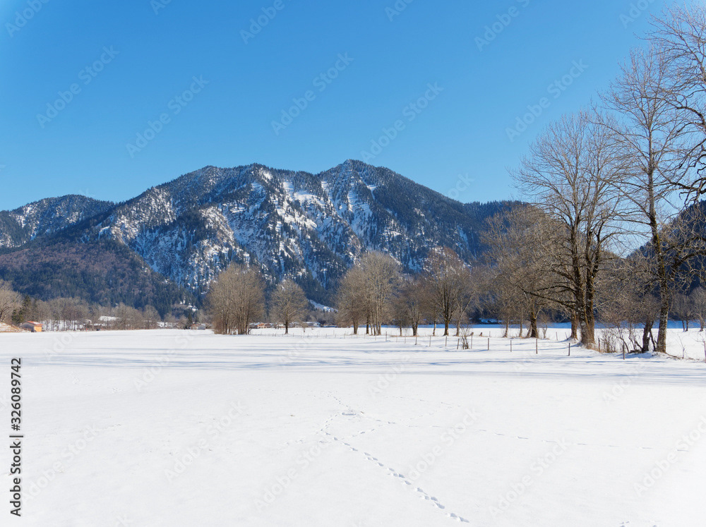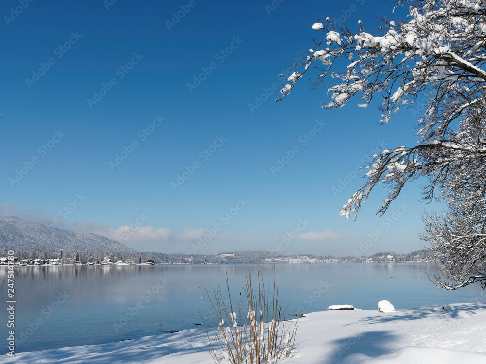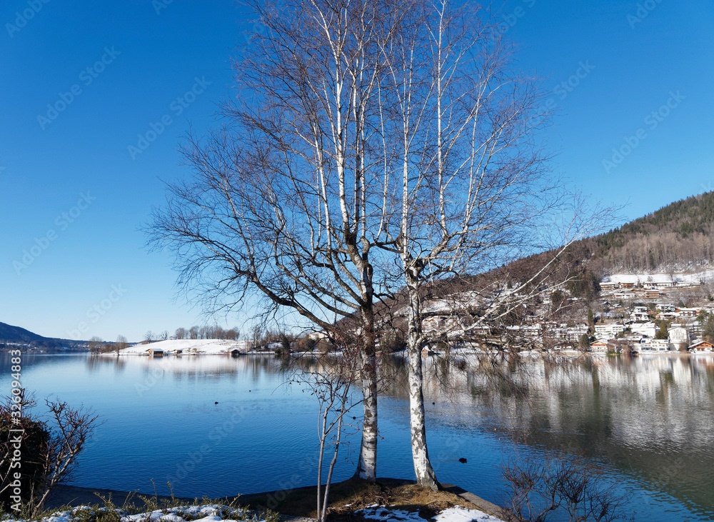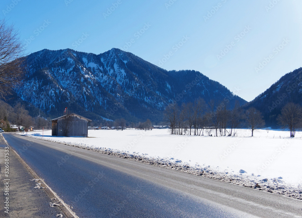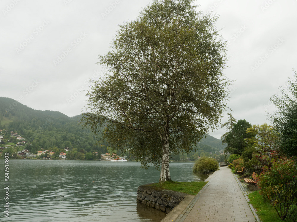 Rottach-Egern am Südufer des Tegernsees umgeben von bezaubernden Landschaftenam Fuß des Wallbergs. Eine idyllische Kirche mit Blick auf die Bayerischen Gipfel