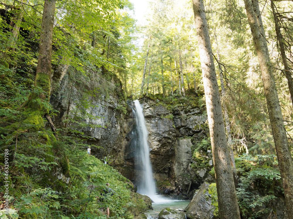 Entlang Einer kurvenreichen Straße den Wald des Rottach Tals befindedt sich der Sibli-Wasserfall. Stürzt sich das Wasser des Schiffbachs in einem türkis schimmernden Pool
