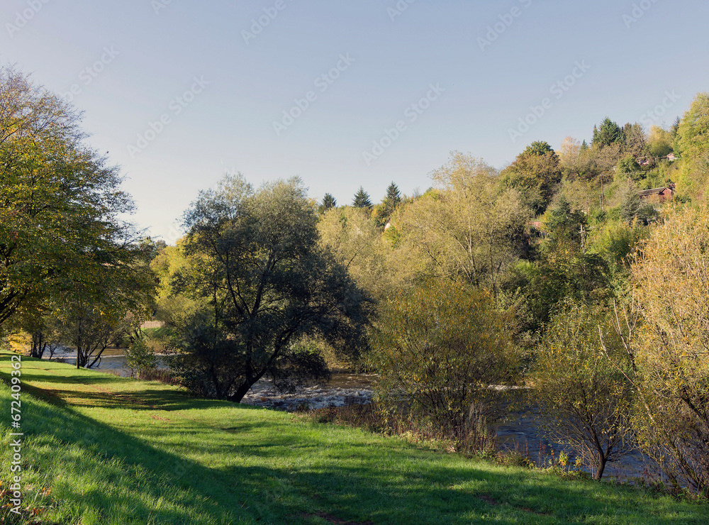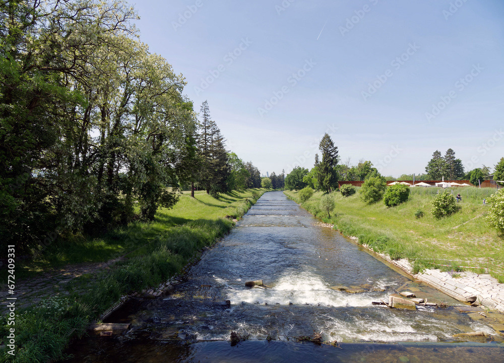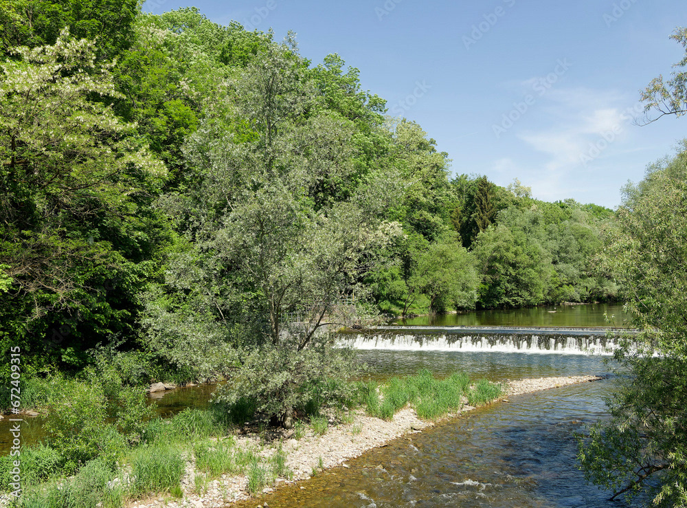 Die Wiese fließt im Lörrach in richtung Basel  in den Oberrhein mündet. Seine Ufer bieten einen Wanderweg der von einer Vielzahl von Bäumen und Grünflächen am Wasser gesäumt ist