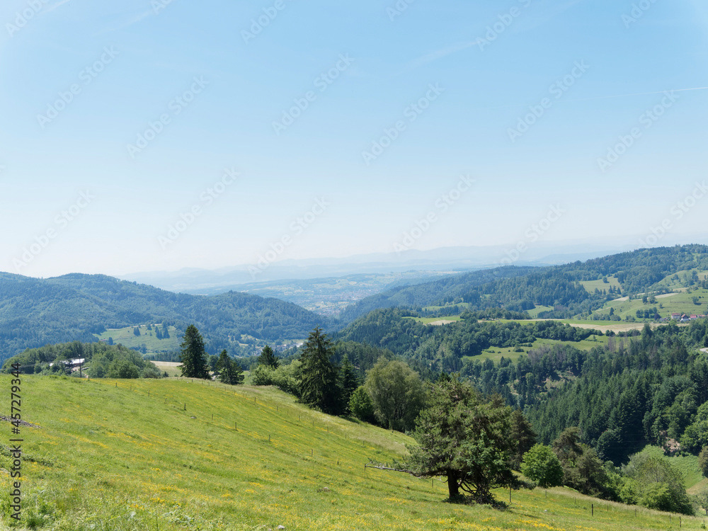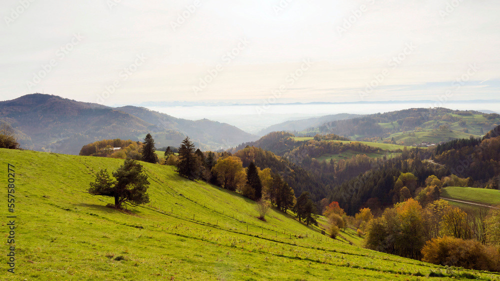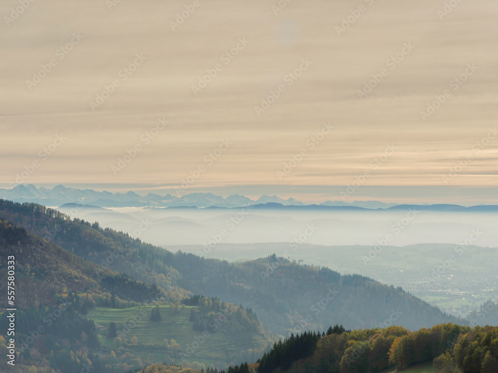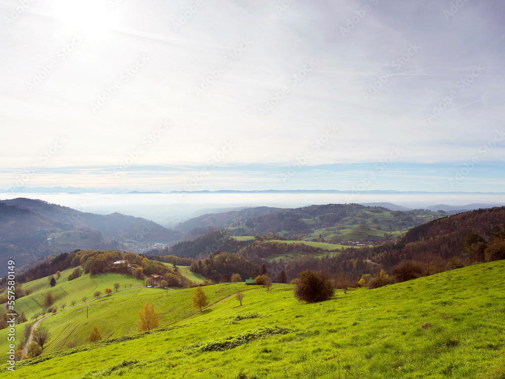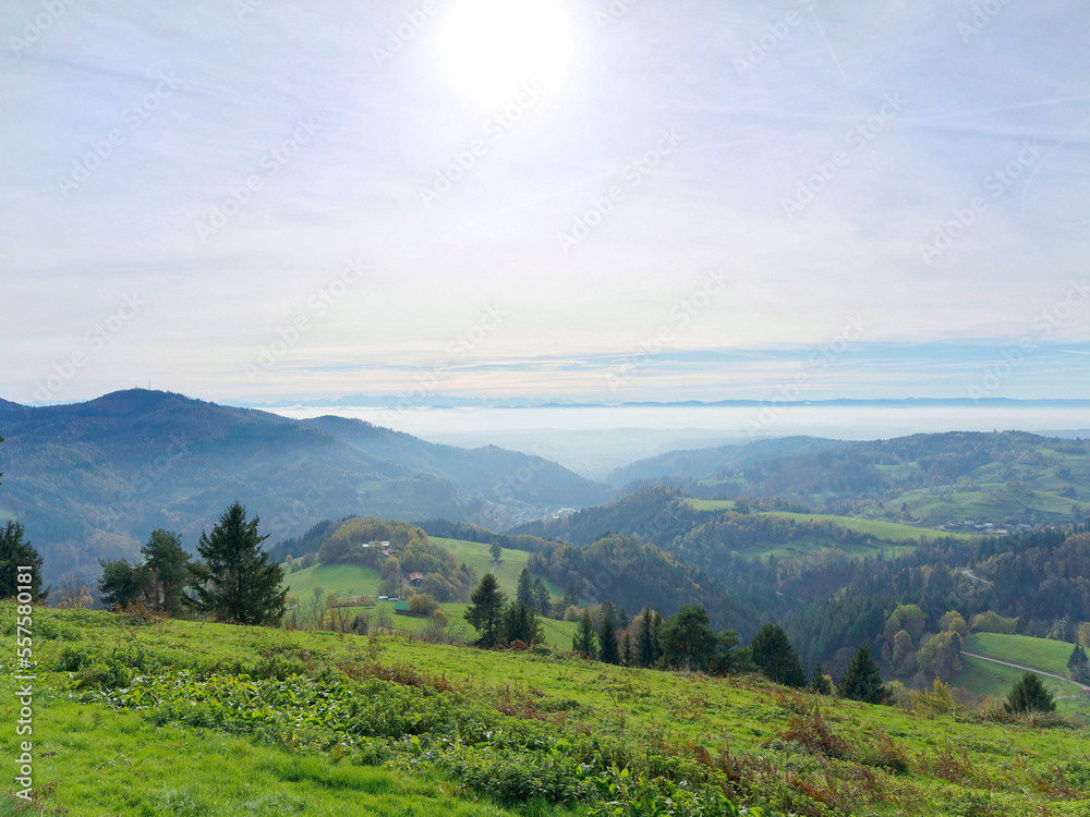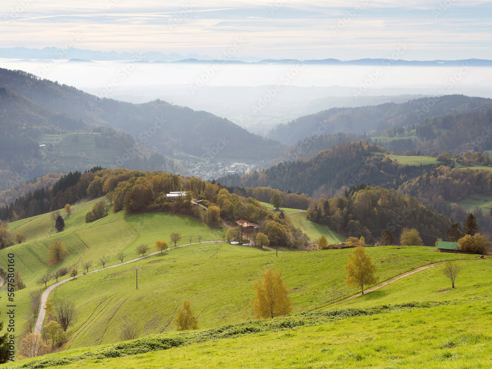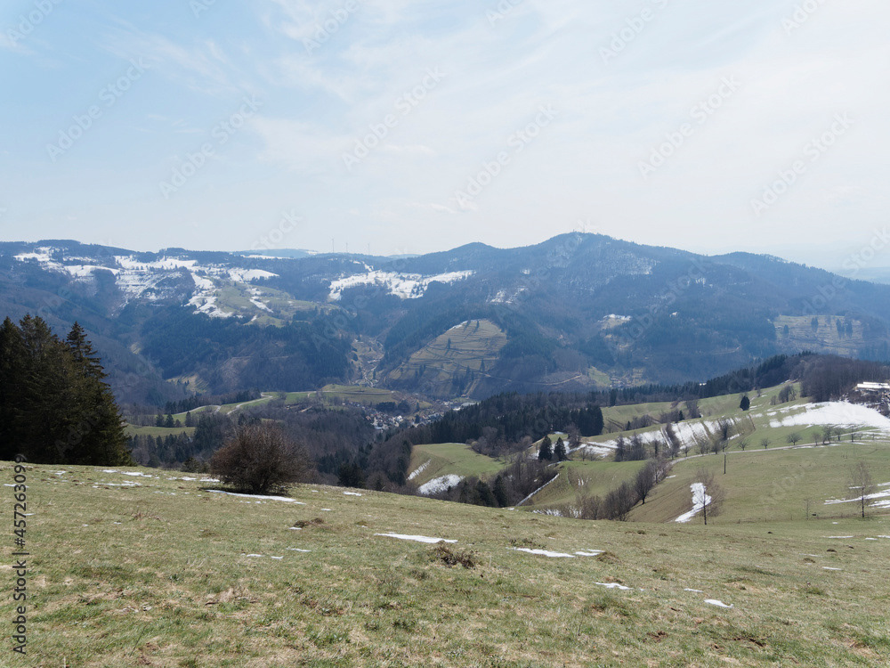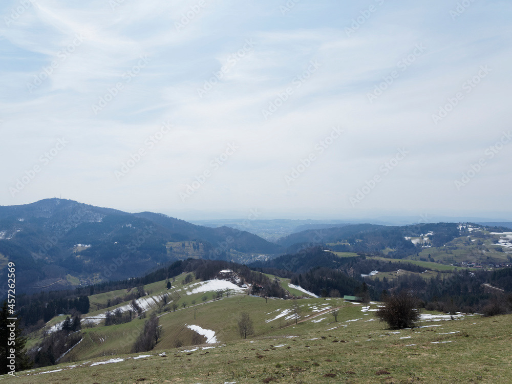 Vom Zimmerplatz nach Pfaffenberg. Am Südhang des Zeller Blauen zu Ausblicken ins Vordere Wiesental, Zell und Lörrach, Wehratal bis auf Jura, die Schweizer Alpenkette am Horizont