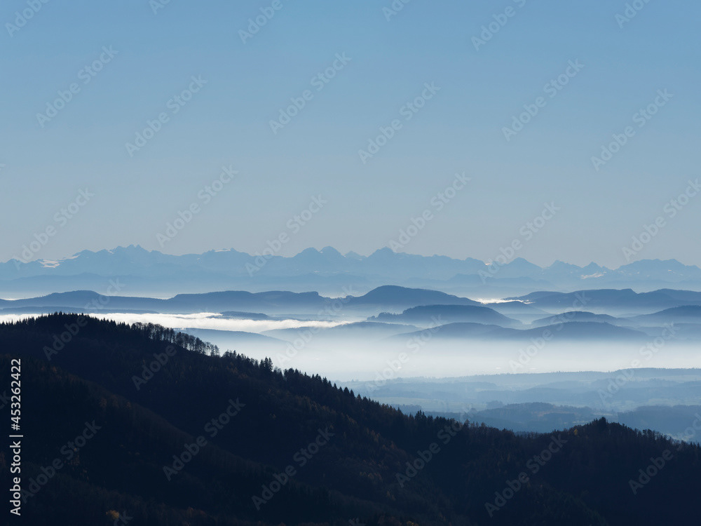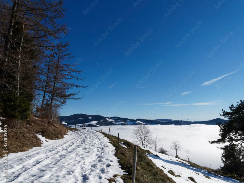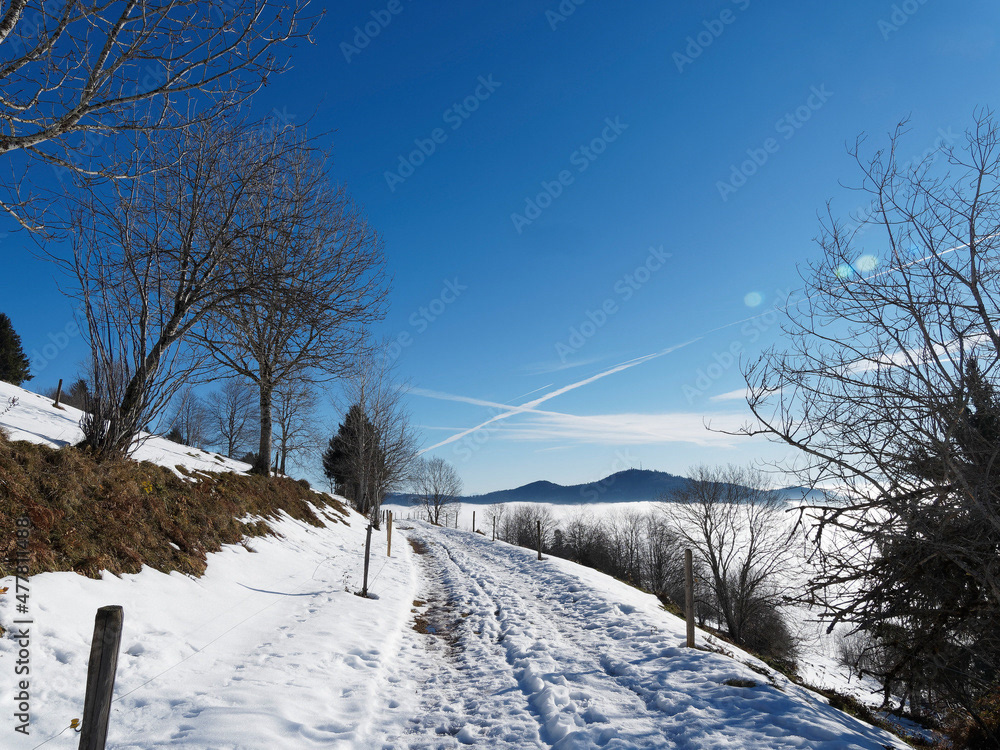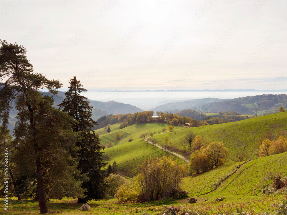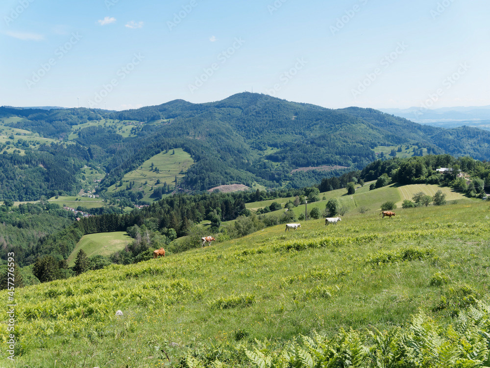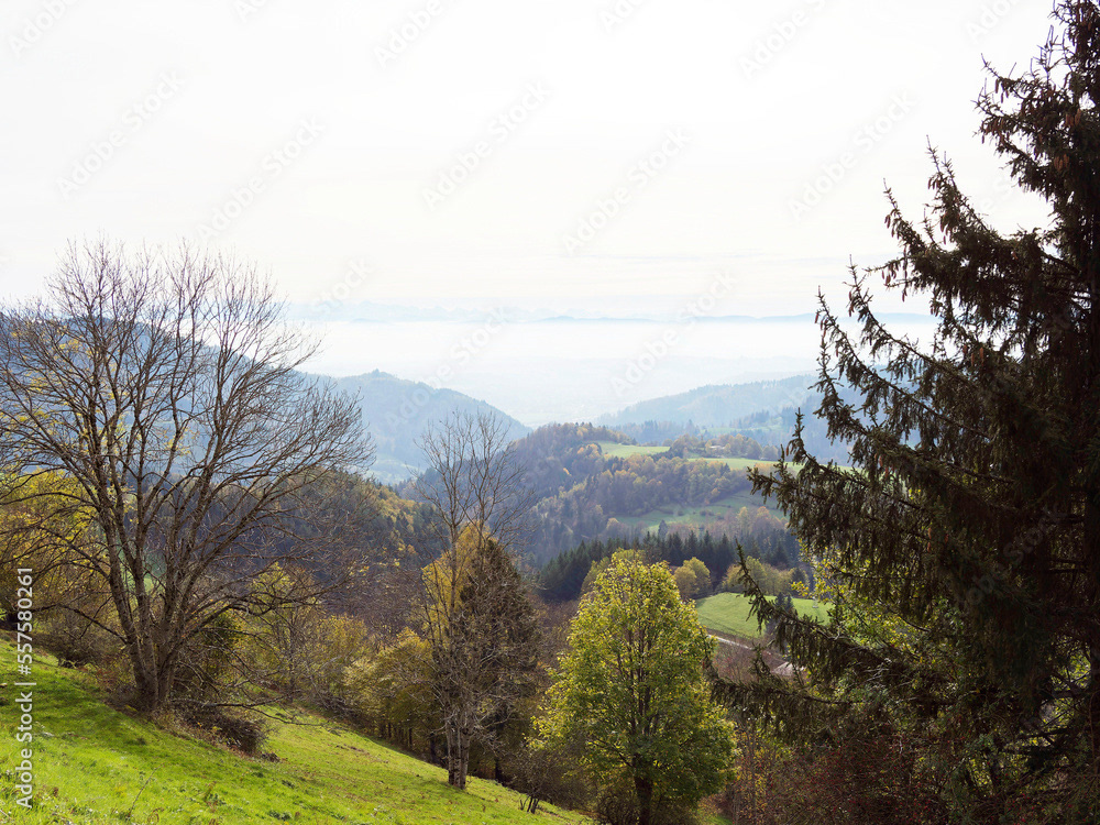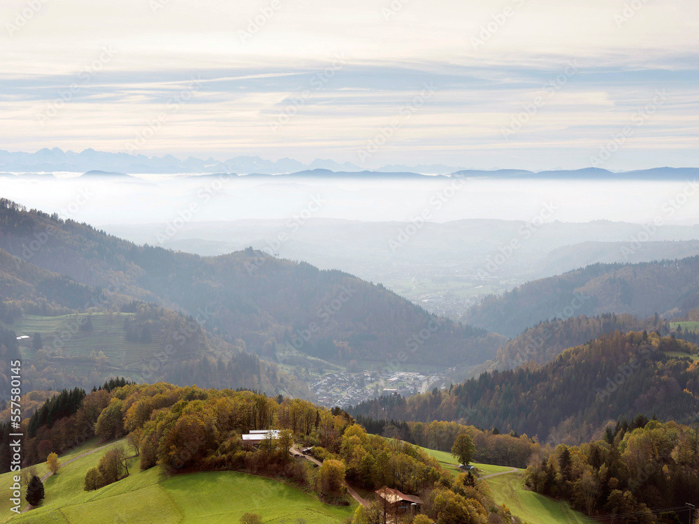 Vom Zimmerplatz nach Pfaffenberg. Am Südhang des Zeller Blauen zu Ausblicken ins Vordere Wiesental, Zell und Lörrach, Wehratal bis auf Jura, die Schweizer Alpenkette am Horizont