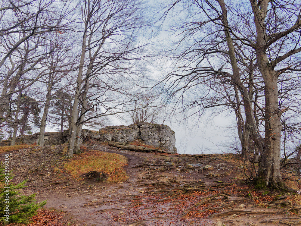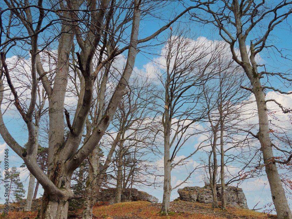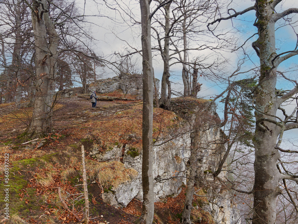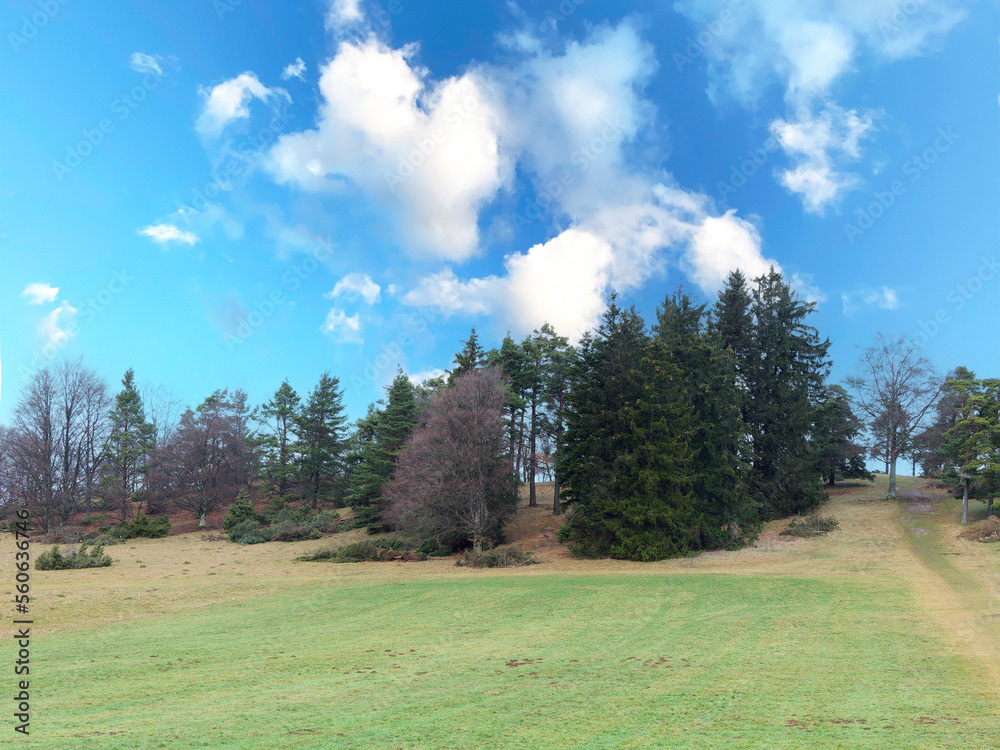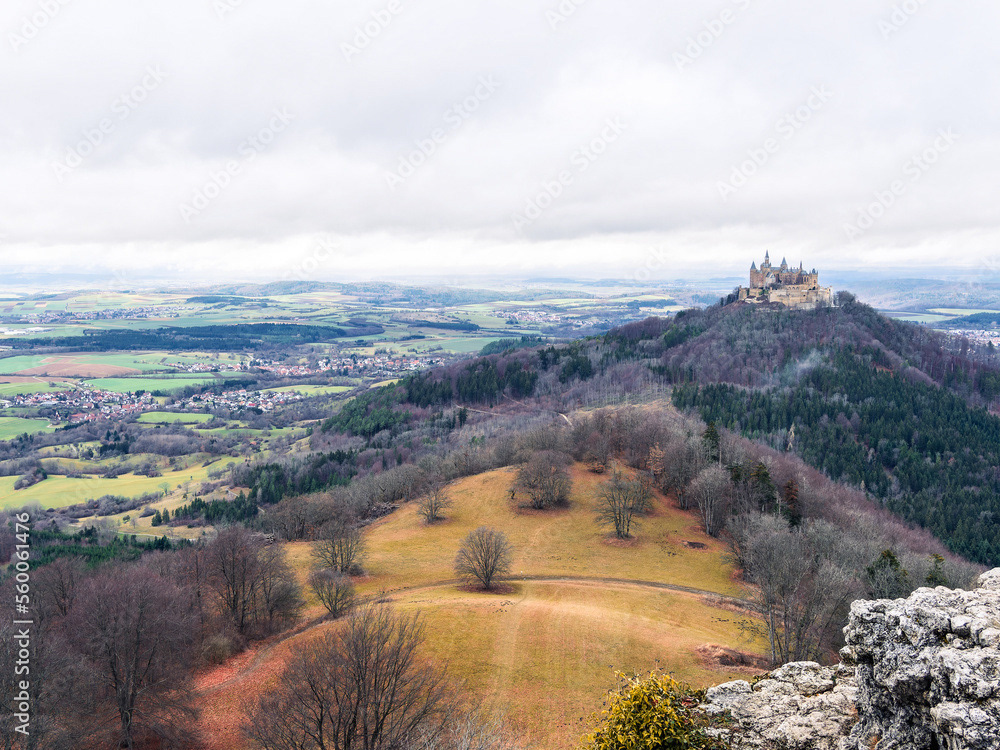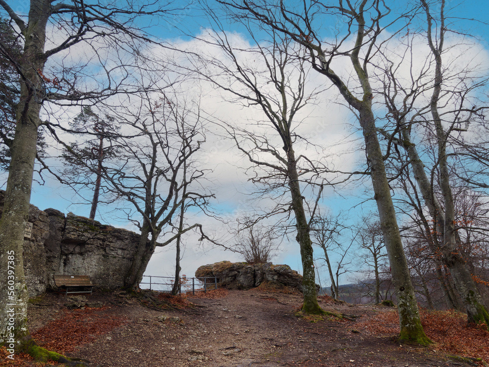 Ausgangspunkt für Wanderungen. Albtrauf mit der ebenen Fläche von Dreifürstenstein und Heufeld ab. Zollenburg-Panorama und Alpenpanorama, Schwäbische-Alb vom Raichberg Turm